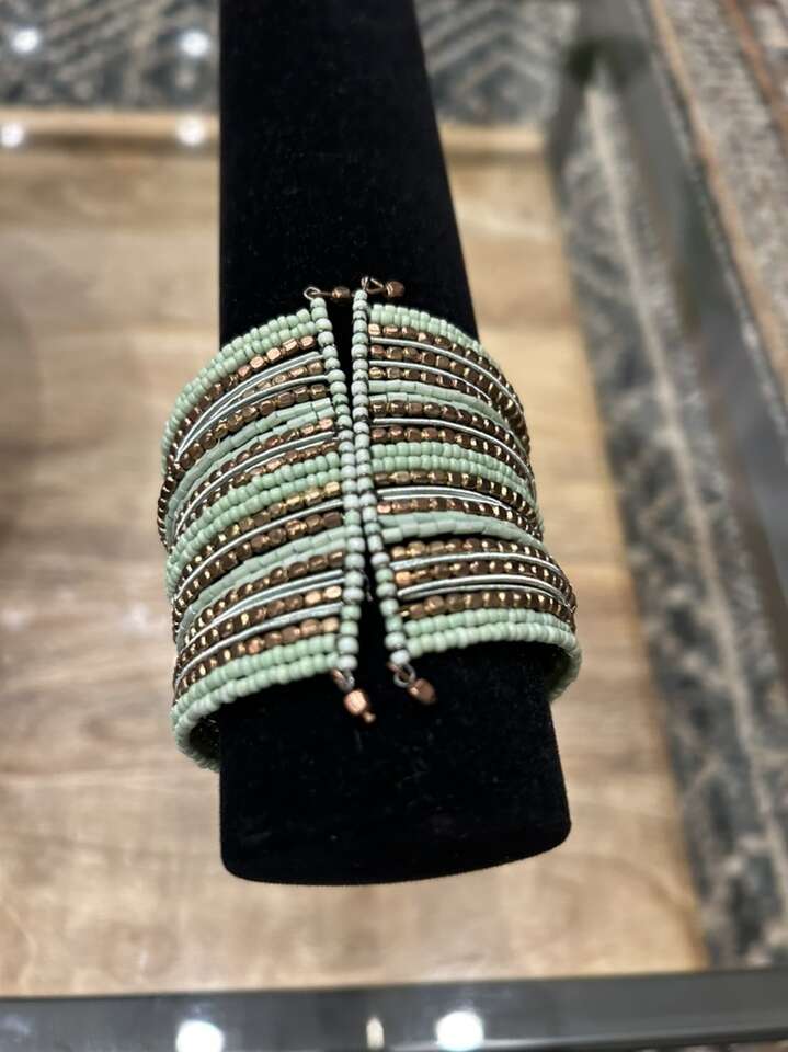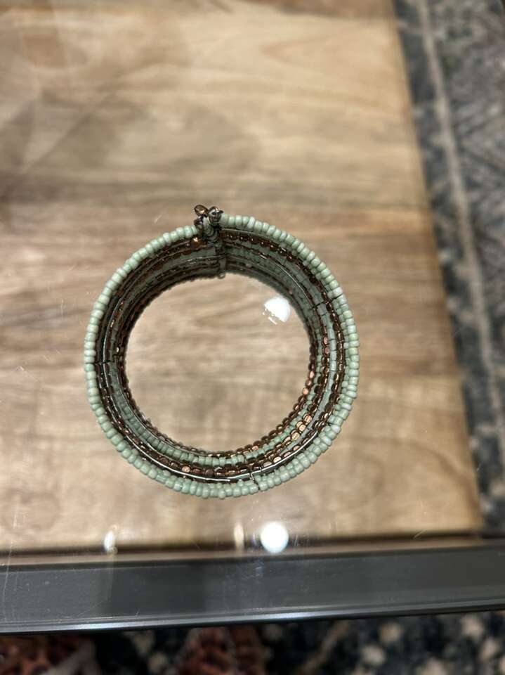 VenmoLike new Indian style wire cuff bracelet made from mint green and bronze colored seed beads. Clean. Smoke free home. Cash or Venmo. Porch pickup from Alpine.