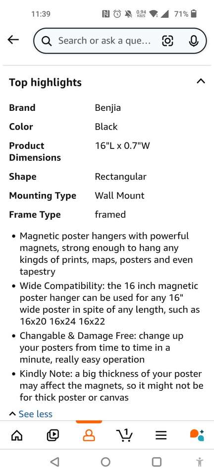 20x30 20x28 Poster Frame, Magnetic Light Wood Frame Hanger for Photo Picture Canvas Artwork Art Print Wall Hanging (1 Pack, 20", Black)