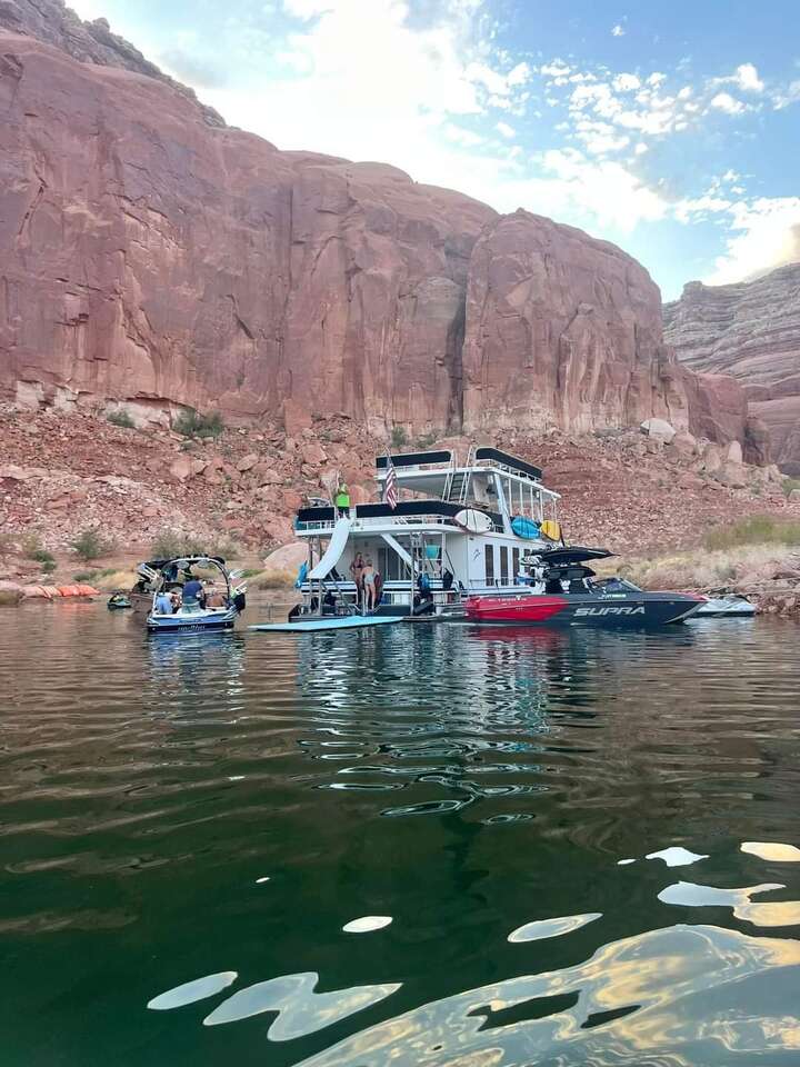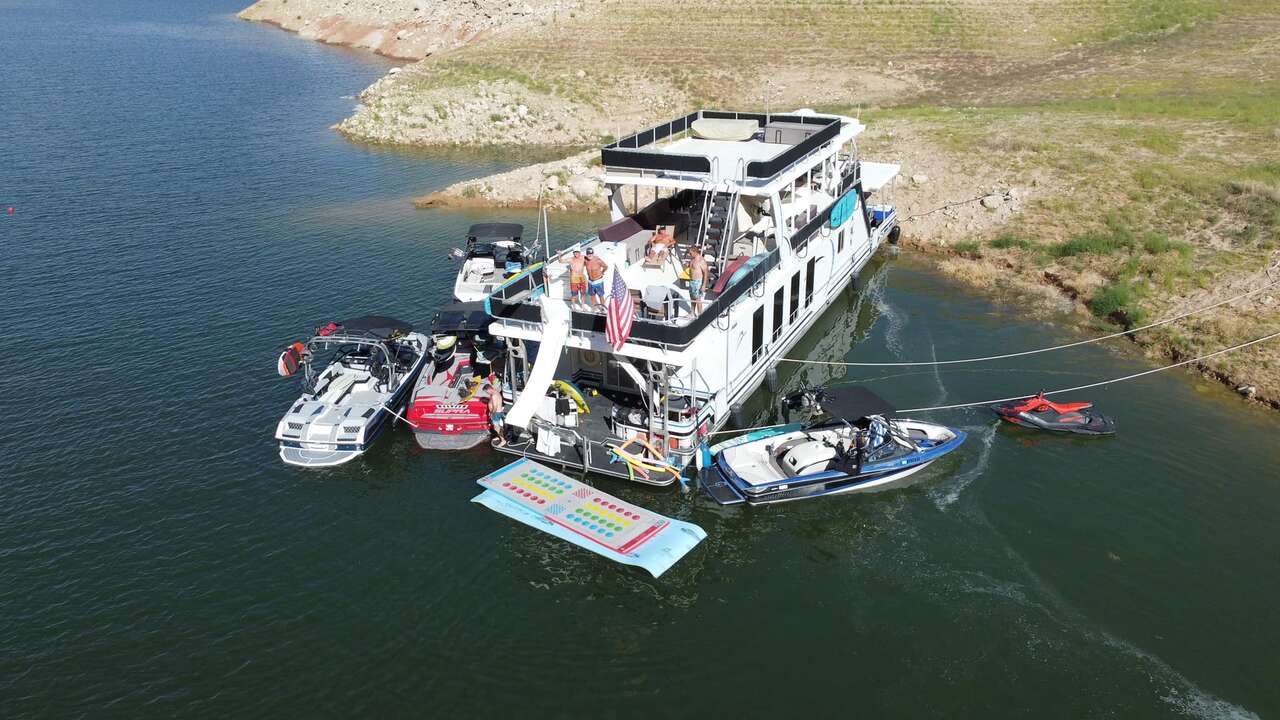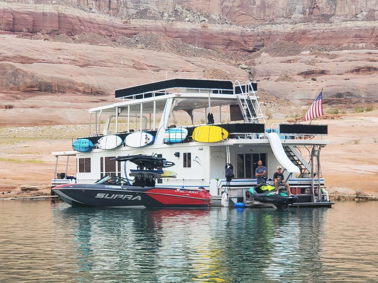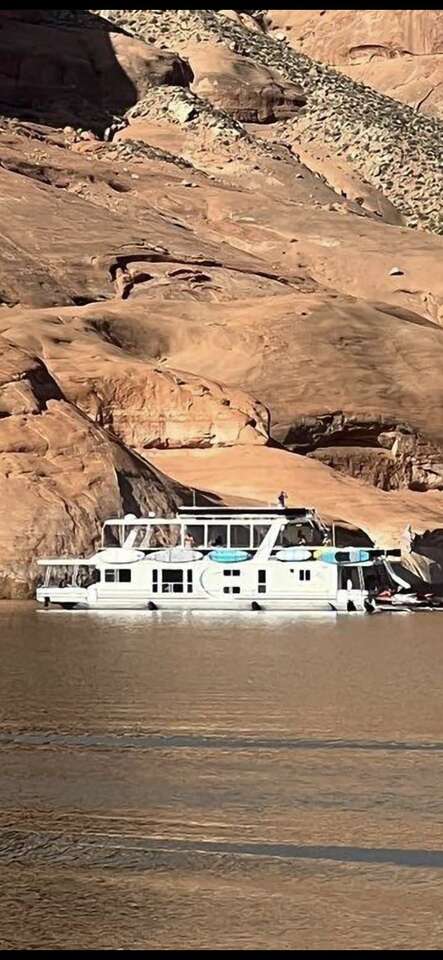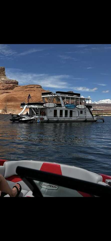 Other amenities like kayaks (3), paddle boards (7), and 15’ RAVE water trampoline come with the boat. The slip has power and water included. Weber barbecue grill, Blackstone Griddle and Treager Smoker, 3 outdoor dining tables, solar battery bank, interior heaters for the cooler months, gas stove/oven, washer/dryer, full frig, standalone freezer, portable icemakers, microwave, dishwasher, solar and 15 KW Westerbeke generator. · Tankless Water Heater (Unlimited Hot Water) · Rudder indicators (Upper and Main Helms) · Front Side Thruster · Fresh Water Tank (100 Gallon) · 120 volt High Volume water pumps · Brand New Emacerator Pump Toilets · New LVL Flooring on Main Level · (2)Toy Tanks w/Pump (200 Gallons Each) · Premium Location Slip at Wahweap Marina - Lake Powell – The Boat is located on F Dock which allows the Mules to drive your stuff all the way to your boat. It is located close enough to the restaurants for convenience, but far enough away if it is busy. · 60" TV with surround sound in Living Room · 60" TV with Swing Mount and surround sound on Upper Deck, Custom Cover · (6) Premium Exterior Speakers and Receiver/Amplifier on Upper Deck · Upper Deck and Front Deck ceiling fans · Third Level Sun Deck · NEW V-8 ENGINES AND BRAVO 2 OUTDRIVES for 2025! · 15 kW Westerbeke Generator (2800 hours) · 3 1/2 Ton Water Source Heat Pump (Air conditioner/Heater) · Front Deck Freezer · Weber Gas Grill · TV Satellite Antenna · (4) Bedrooms - 2 King, 2 Queen · (2) Bathrooms · Washer & Dryer - Stacked · Outback Invertor System w/ 6 NEW High Capacity AGM Batteries in 2024 · Solar Panel System (Updated to maximize new batteries efficiency for 2025) · Generator 2700 hours · Upper Deck Helm · Upper deck double bar with sink, refrigerator and ice maker Onboard Toys include • LilliPad Diving Board • LilliPad Mat • Sliding Board • Hot and Cold Shower on back Deck The Houseboat includes the following: • 2 - 2021 Sea-Doo Spark Trixx 3 passenger personal watercraft with sound system, covers and more • 2021 Double Trailer for Sea-Doos • Many adult and kids paddle boards • 15 ft. RAVE floating trampoline • Numerous blow up toys and tubes • Floating Portable Waterski Course • Floating “island” • Pair of Underwater Sea Scooters • Fully stocked Kitchen • Tools for houseboat including Cordless Drill, power washer, cordless blower, etc. • 30 Sleeping Pads that are set up as 6 couches when not in use as beds • 24 Deck Chairs • 4 Chaise Lounge Chairs • Several Storage Boxes for sleeping stuff during the day and storage when off the boat • Pair of single person Kayaks with paddles • Double person Kayaks with paddles • 2 - 8 ft and 1-6 ft. Banquet Tables Annual Maintenance Fee is currently estimated at $6,000 per share per year billed in Spring and Fall ($3,000 each Invoice). Additional pictures and package on the boat can be emailed to you after we communicate. *Call, Text or Email for any additional questions or to schedule a showing. Thanks, Michael