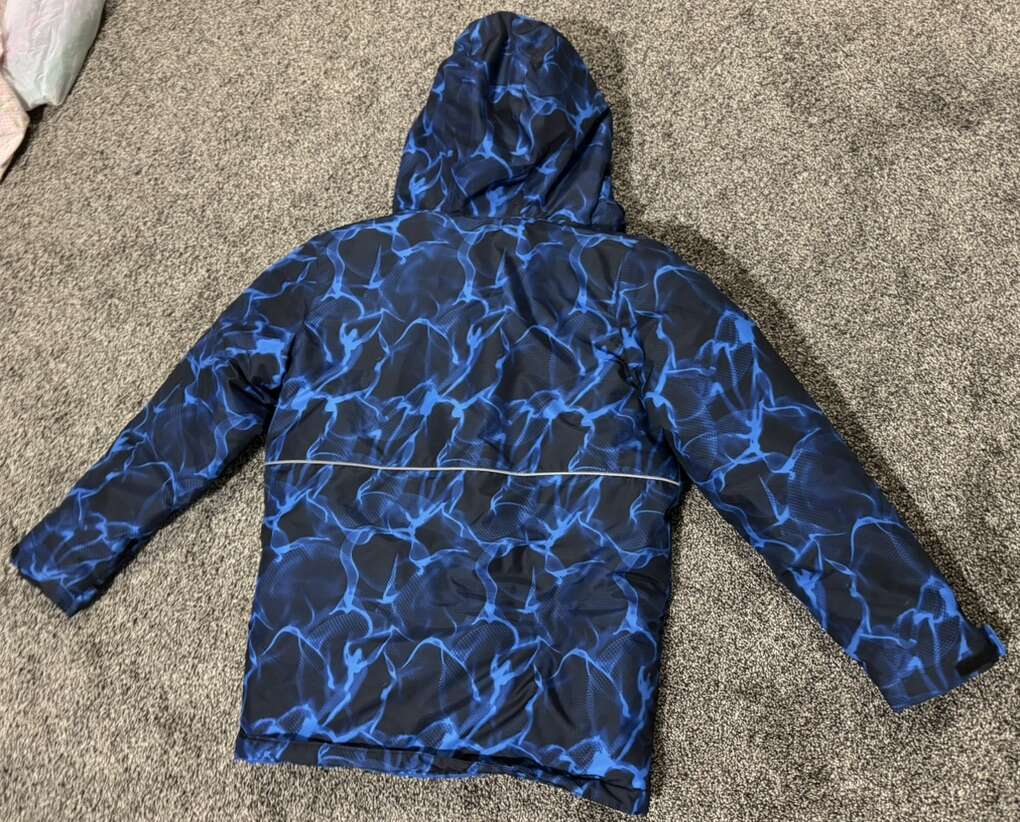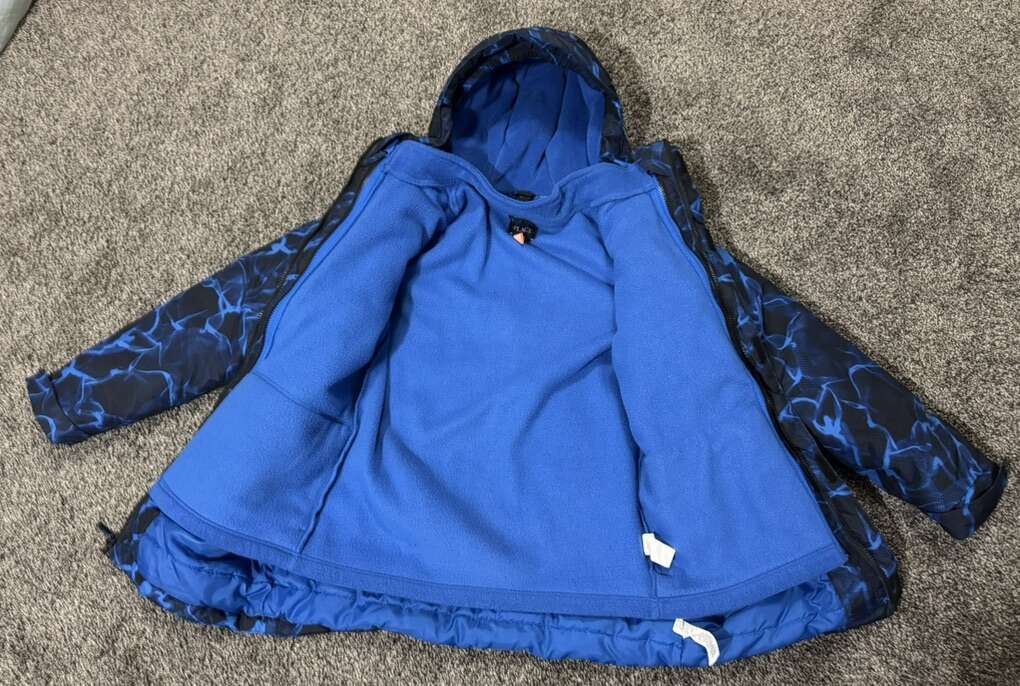 Rugged, warm, wind proof, water resistant and durable zippers and velco. The Children’s Place Boys WinterJacket Size X-Large Size 14 Blue Camouflage Water, Wind Resistant Insulated Shell Size Zip Pockets Hood Full Zip Closure
