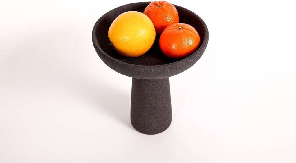 Its black color, footed base gives it an elegant touch. Perfect as a dining table centerpiece decor or kitchen counter decor. A unique, stylish addition to any entryway table or shelf decor. Its rough texture adds an element of on trend rustic charm that is perfect for those seeking a natural, organic feel in their home decor.