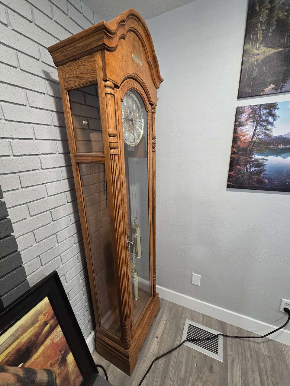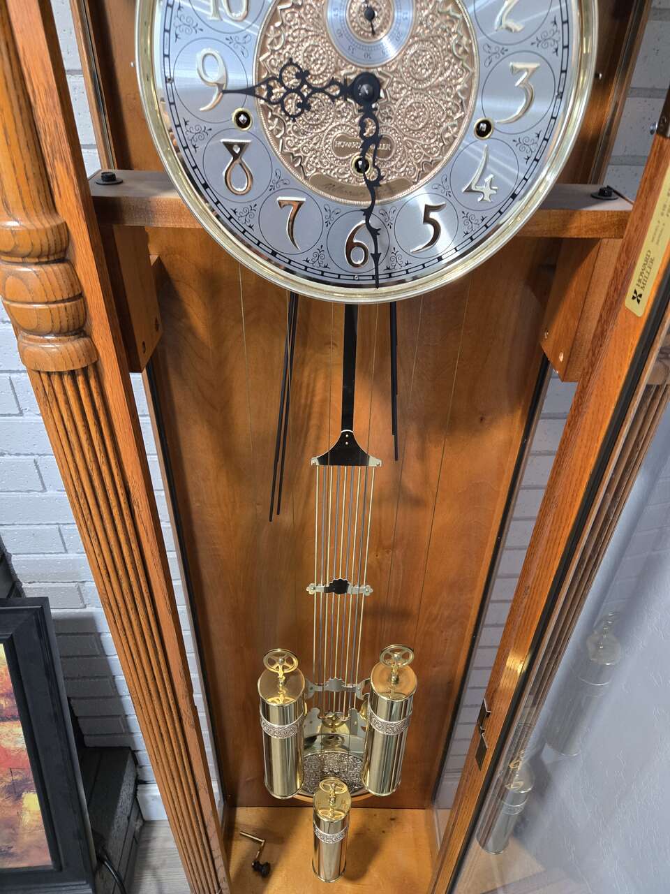 *decorative, polished brass weights and pendulum are designed to complement the dial