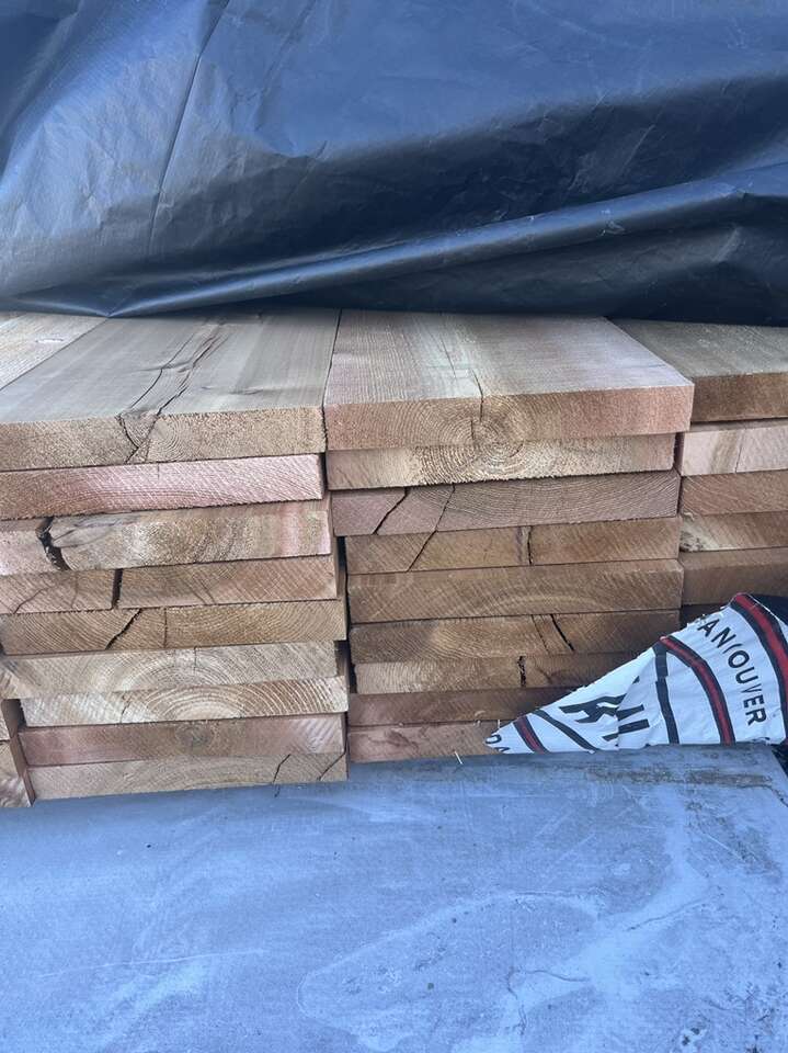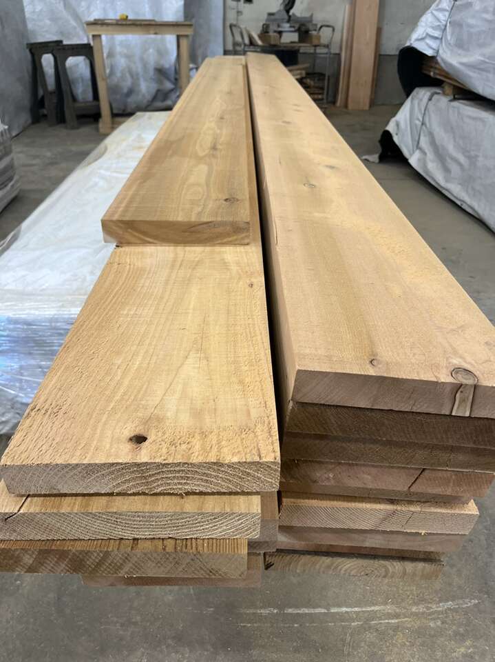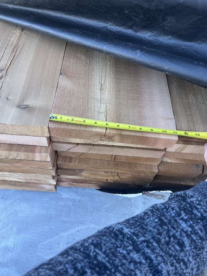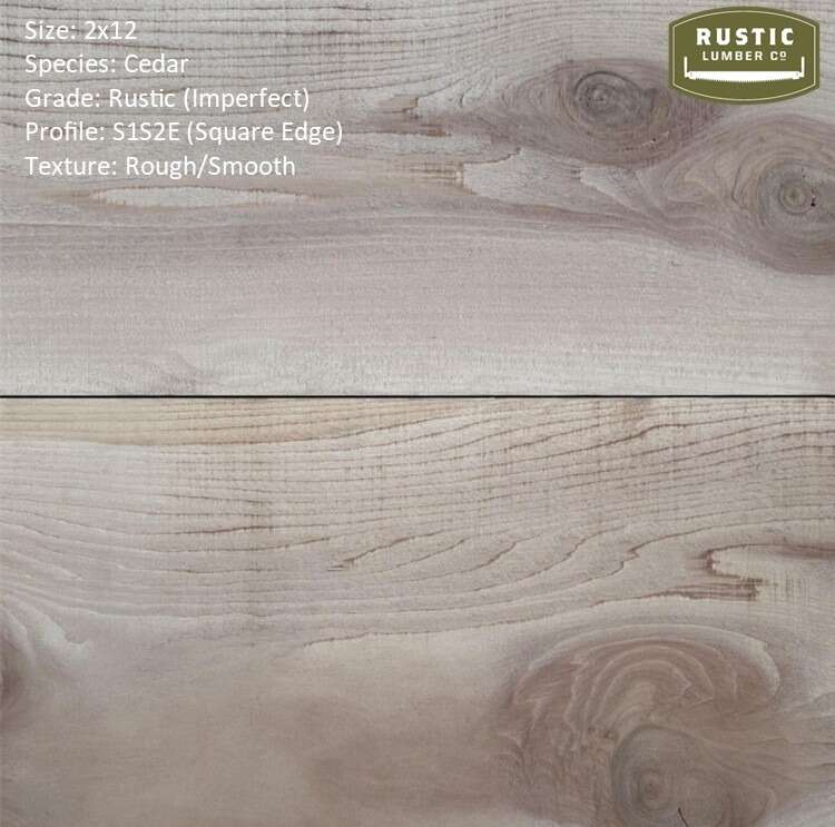 Hearty 2x10 and 2x12 Cedar lumber. Both sizes come in Rustic Grade. Expect some inperfections, mostly splits on the ends as shown. We also have this material in the higher Select Grade. Please call to discuss this material in Select Grade.