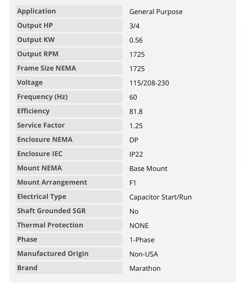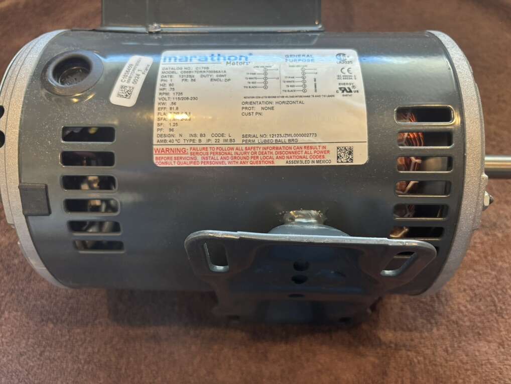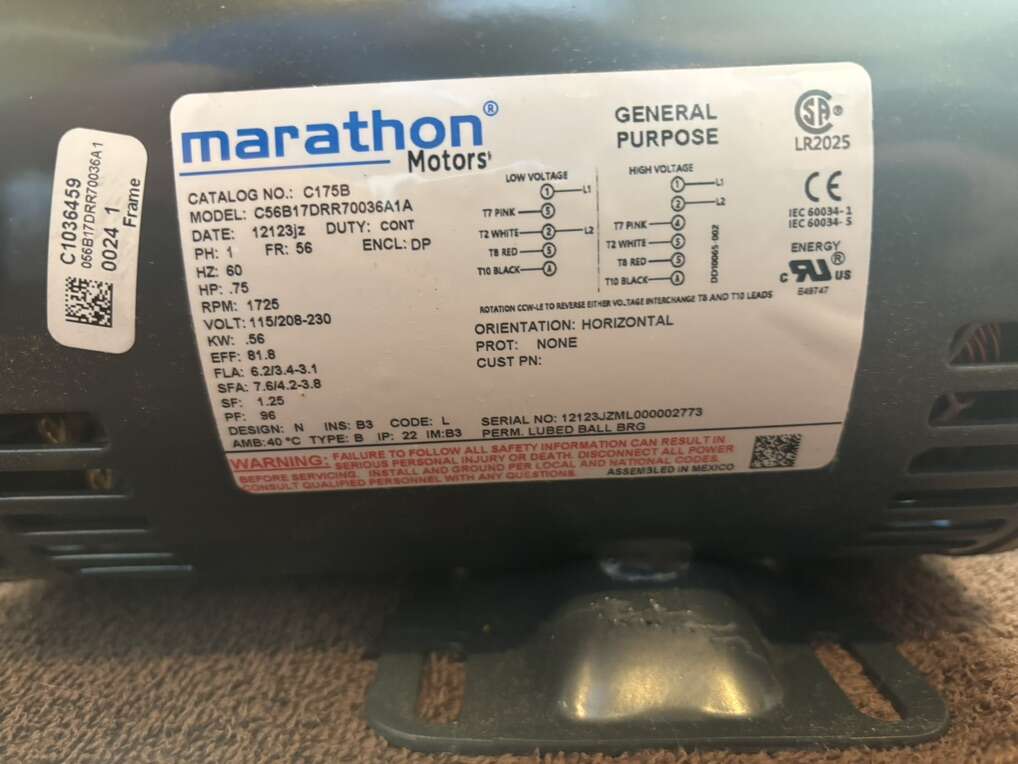 Description- C175B 3/4HP, 1725 RPM, 115/208–230V single phase, 60 Hz, general purpose electric motor. See photos for more product information and specifications.