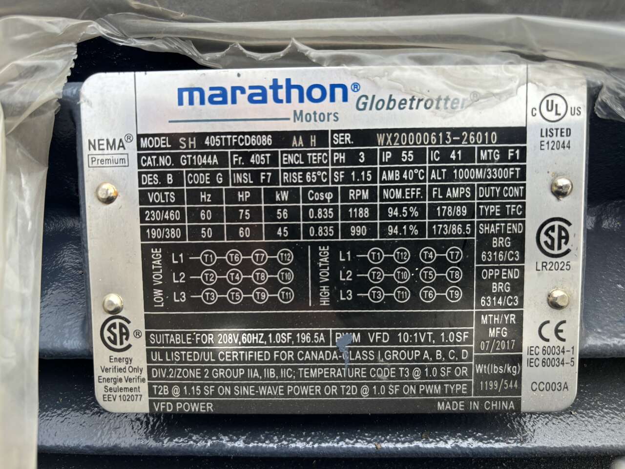 Catalog Number: GT1044A 75HP 1188RPM 405T 3PH