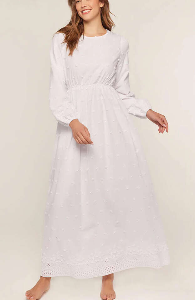 ApplePayIntroducing the charming Kinsale Floral Eyelet Temple Dress! Made of 100% Cotton with a Polyester lining, it features delicate dotted floral applique, an eyelet hem, an elastic waist, and a round neckline with keyhole button. And the best part? It has pockets! A perfect combination of comfort and style, this dress will make you feel effortlessly lovely.