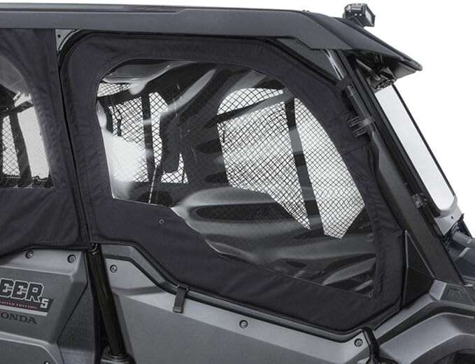 Enhance your Honda Pioneer 1000's comfort and protection with this Fabric Front Door Set. Designed to shield occupants from the elements, these doors are constructed from durable black fabric and seamlessly integrate with your vehicle's existing frame. The single-piece design ensures a snug fit, reducing drafts and debris entry during rides. Installation is straightforward, attaching directly to the factory mounting brackets without the need for modifications.