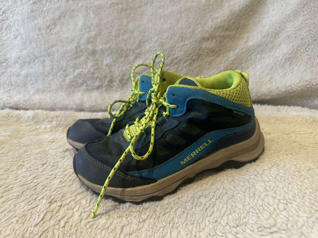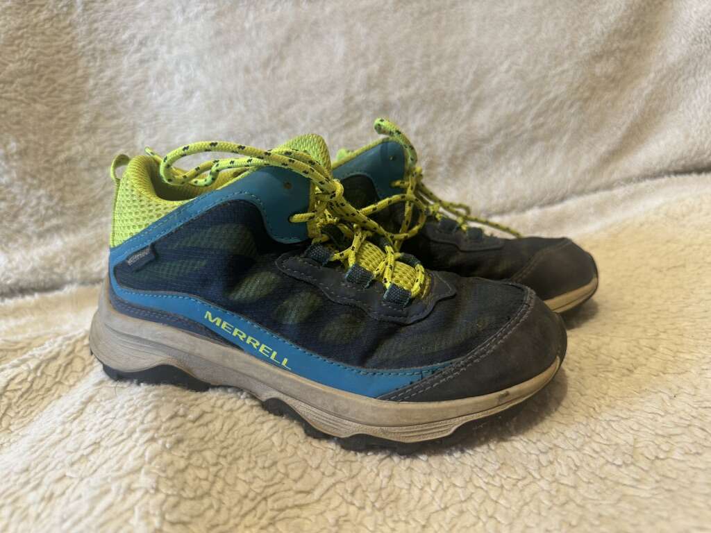 Merrell toddler size 1 textile/mesh waterproof navy with yellow trim, lace up hiking shoes. These are in good condition, see photos for details. I take cash or Venmo, but cash is preferred. Text is best. 801201-4446. Check out my other ads for additional sizes and styles.
