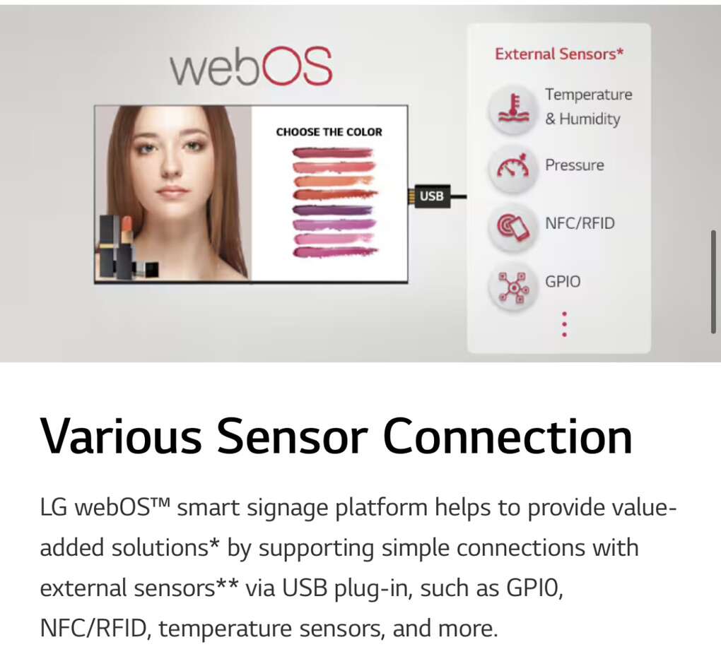 LG US Business is a leading provider of display TV solutions. Advanced technology and innovation help us deliver products that are tailored to maximize your business' potential. We invite you to explore our diverse product line-up and experience first-hand the vast array of features and advanced specifications that yield enhanced performance. LG digital signage is designed to get your message seen and help you grow your business. The signs are available in wide variety sizes and specifications to match your needs. Our lineup of LED backlit displays, DS Media Players, Stretch and Touch-Screen Displays virtually insures there’s an LG product that can enhance your business. Display HD and ultra-high definition (UHD) content on LG’s powerful, cost-effective, and reliable Digital Signage (DS) players, can support different types of video and audio formats. Display various types of media in full HD with *HBR (high bit-rate) Bandwidth. With 3,840 x 2,160 pixels you'll get excellent performance. And you can play media files in .mp3, .mpeg, .avi and more the ultimate viewing experience. SuperSign software allows you to play media files in different formats, such as videos, music, images, and documents via the LG SuperSign Player. The LG SuperSign Player is a software program used to display advertising contents in compatible LG monitors, TVs and displays. LG DS media players work seamlessly with most LG Digital Signage models to deliver high-quality content to your menu boards, retail signage, video walls and more. DS Media Players: Display HD and ultra-high definition (UHD) content though LG's powerful, cost-effective, and reliable Digital Signage (DS) players, which can support a wide range of video and audio formats. New in the box, located in west valley city