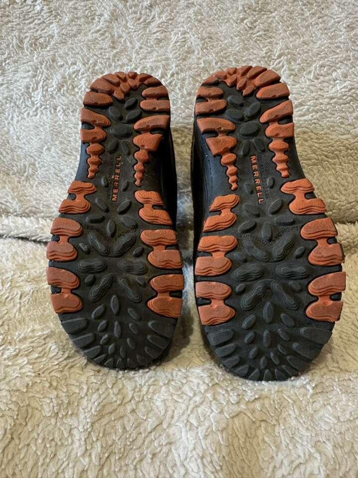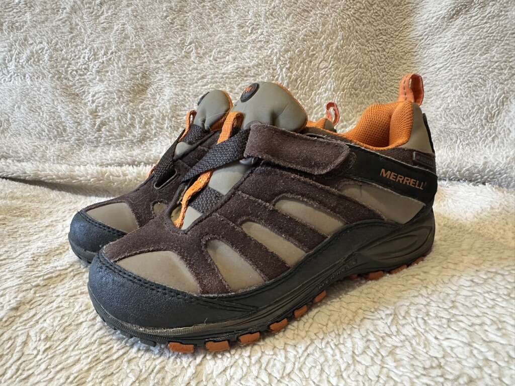 Merrell toddler size 13 brown/beige waterproof hiking shoes with Velcro strap. These are an excellent condition, see photos for details. I take cash or Venmo, the cash is preferred. Text is best. 801-201-4446. Check out my other ads for additional sizes and styles.