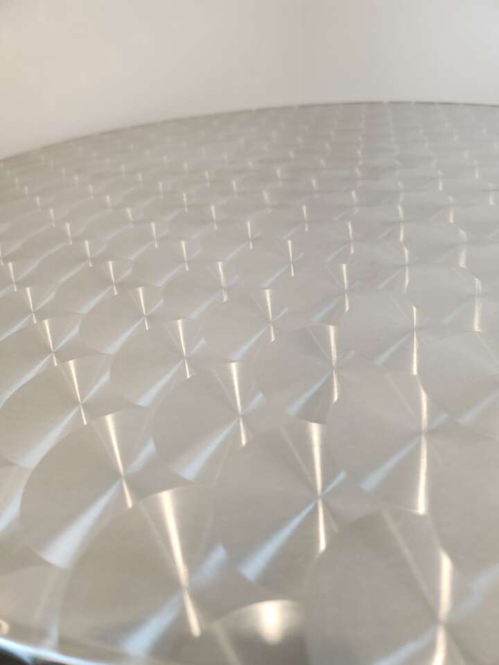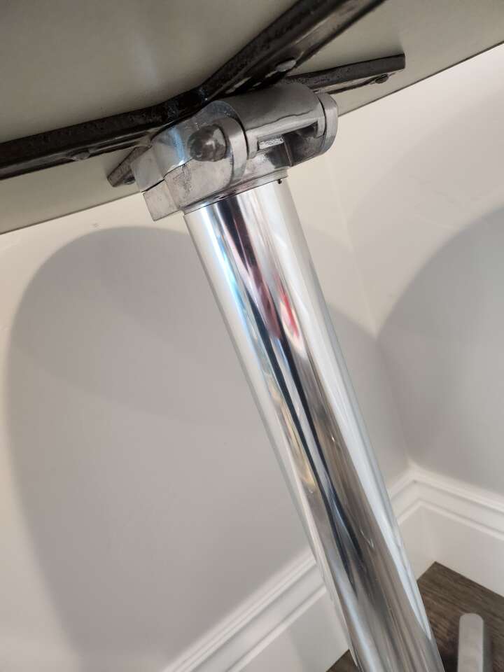 Outdoor metal bistro table purchased and used only as an indoor table/desk in grandkids' playroom. 30 inches tall and diameter of table top 23 1/2 inches. Smoke free, pet free home. Purchased from Macy's.
