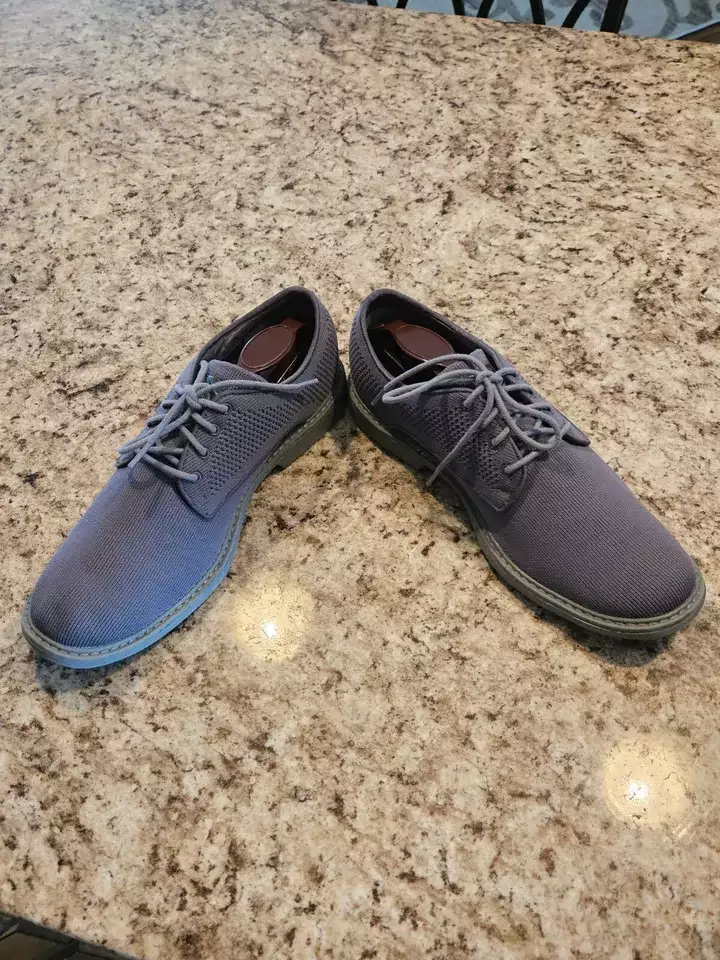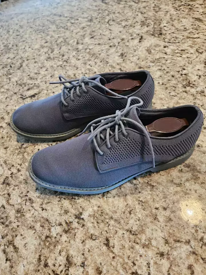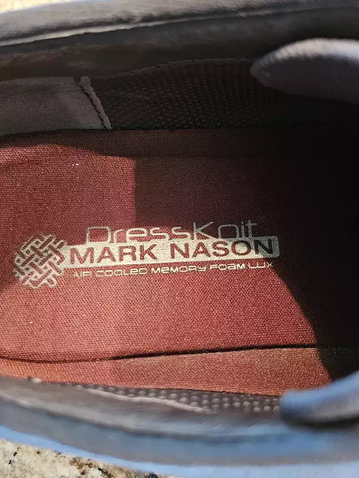 Item specifics Condition - Pre-owned: An item that has been used or worn previously. Toe Shape - Round Toe Closure - Lace Up US Shoe Size- 10.5 Occasion - Casual, Travel, Workwear MPN - unknown Fabric Type - man made Accents - none Vintage - No AU Shoe Size - 9.5 Department - Men Style - Casual Outsole Material - Rubber Features - Comfort, Breathable Season - Spring, Summer, Fall UK Shoe Size - 44 Pattern - Solid Character - none EU Shoe Size - 44 Color - Gray Lining Material - man made Brand - Mark Nason Type - Casual Customized - No Model - Mark Nason Theme - none Shoe Width - M Upper Material - man made Insole Material - man made Country/Region of Manufacture - China Product Line - DressKoit UPC - Does not apply Item description from the seller. This pair of men's gray cloth laceup oxford shoes by Mark Nason in size 10.5. Made with man made fabric, these casual shoes feature a round toe shape, rubber outer sole and breathable comfort. Suitable for travel, workwear, and casual occasions during summer fall, winter and spring. The shoes have a solid pattern and are designed with a Mark Nason product line called DressKoit.