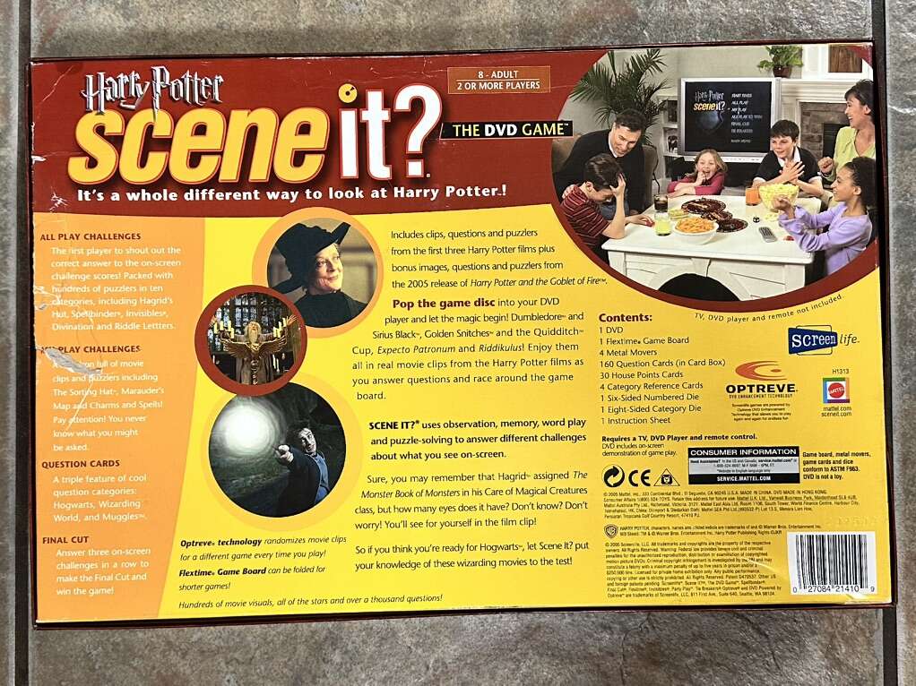VenmoLike new COMPLETE SET Scene It? Harry Potter DVD Game which contents include: 1 DVD, flextime game board, 4 collectible metal tokens, 4 reference cards, and 160 trivia cards all in excellent condition for $25. Pickup in Clearfield, will accept cash or Venmo.