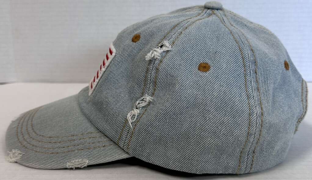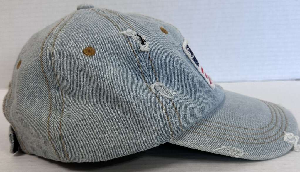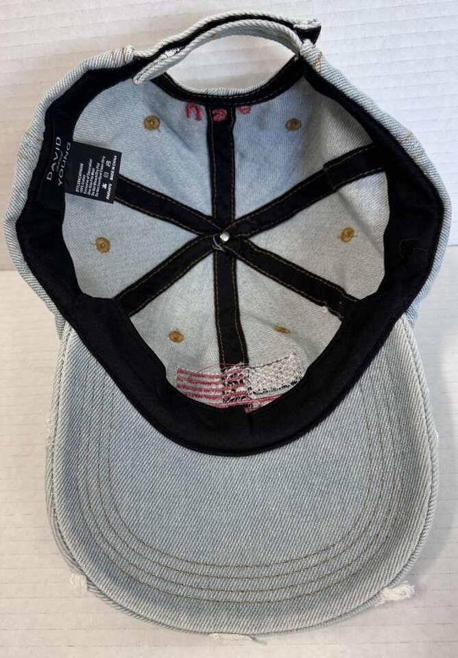 Top off your look with the stylish David & Young Denim Distressed American Flag Adjustable Hat. Crafted from quality cotton denim, this baseball cap is designed to offer both comfort and durability. Its striking red, white, and blue color palette captures the essence of patriotic flair, complemented by the timeless American theme.