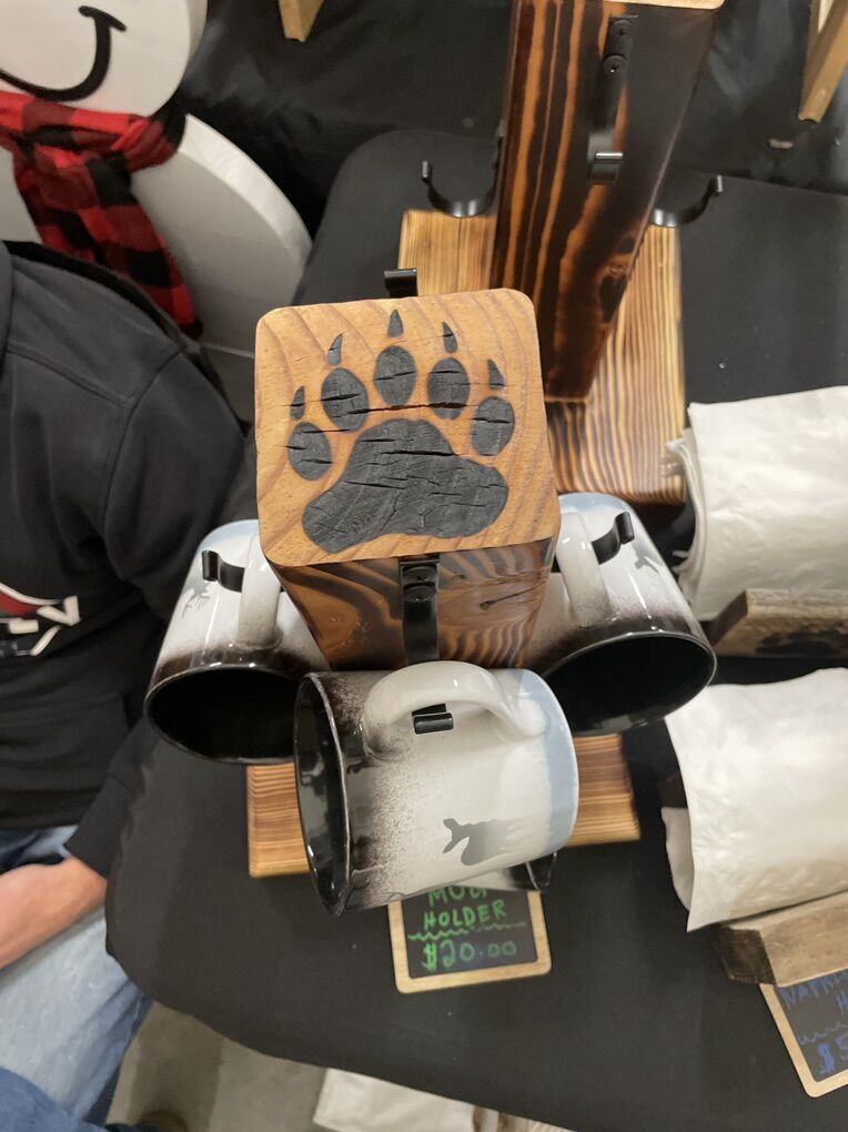 ApplePayCustom made wood burned coffee mug holder holds 6 mugs smaller ones hold 4 mugs cactus. (Cups not included).