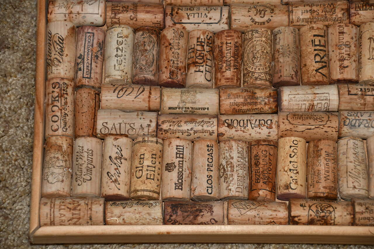 This LARGE "CORKS" WALL HANGING is about 24" x 23". Our home is smoke free. Questions??? Please ask. We are located in Plain City. Cash only please.