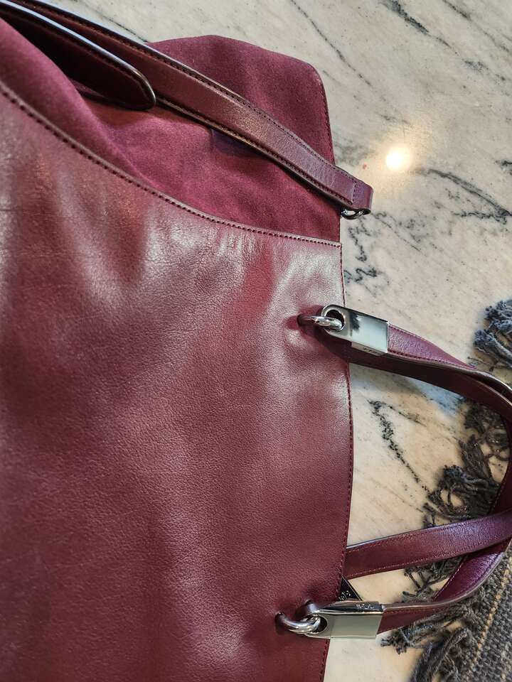 VenmoRalph Lauren, suede and smooth leather combination, bag. Rich merlot, burgundy color. Handles and crossbody strap. Hardware is close to the color of the bag. Smoke free, pet free home.