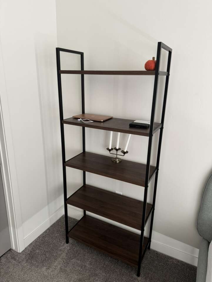 Dark brown wood bookshelf 6ft tall Height x 72 Inches Width x 30.5 Inches Dimension x 13.5 inches Very sturdy Bought new but don’t use it as much as I thought I would. $150 obo