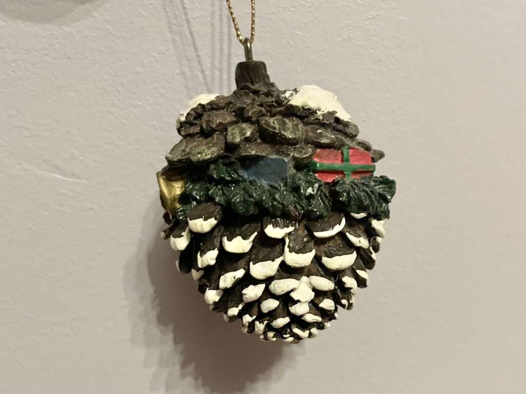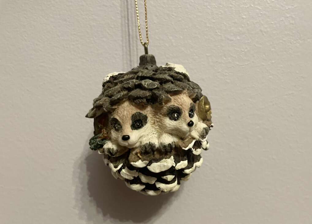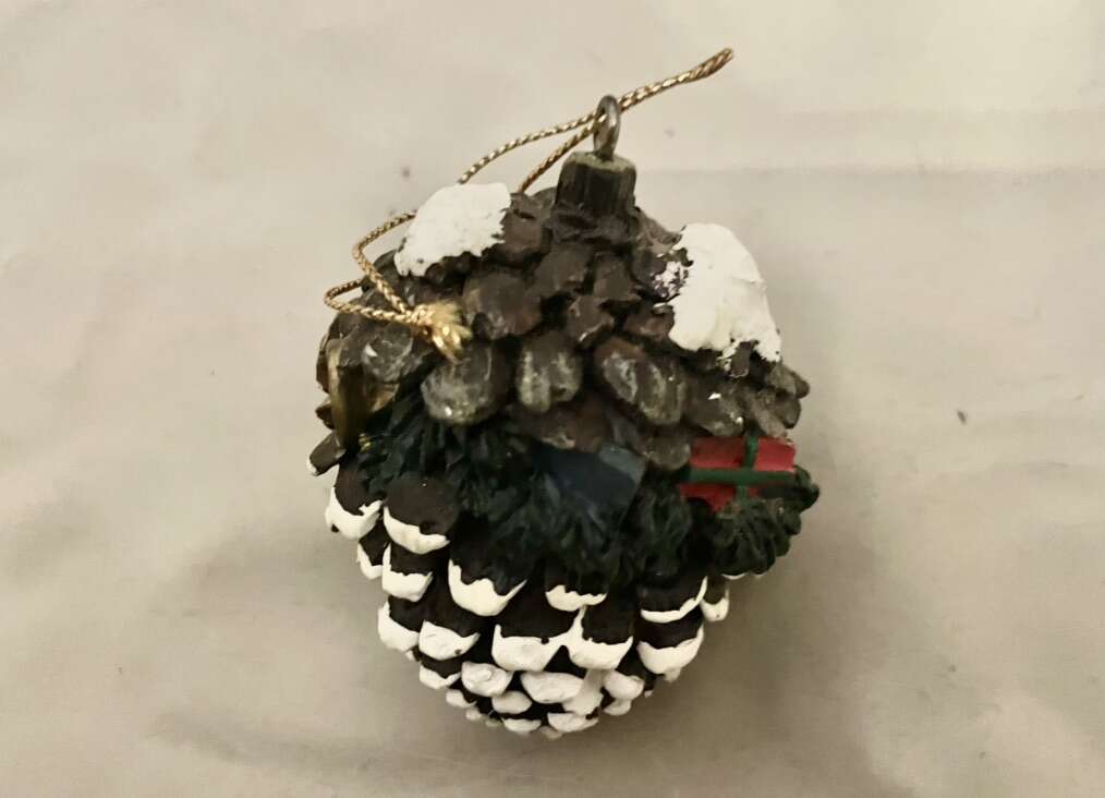 I have a vintage Christmas ornament from 1996. It is a pinecone with 2 baby raccoons in it. It is pretty heavy for its size and I assume it’s made of resin. It is 2 3/4 inches tall. See my other ads for jewelry, artwork, home decor and more.