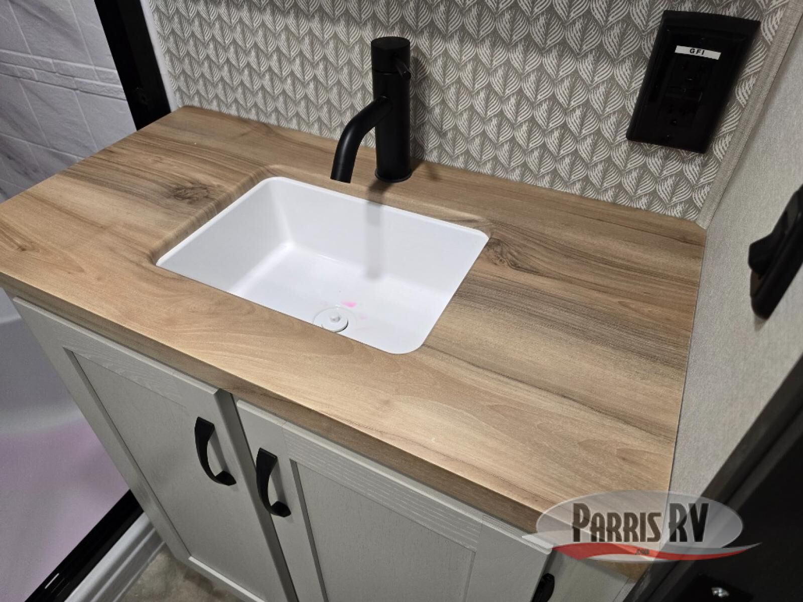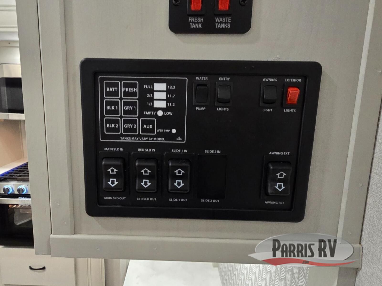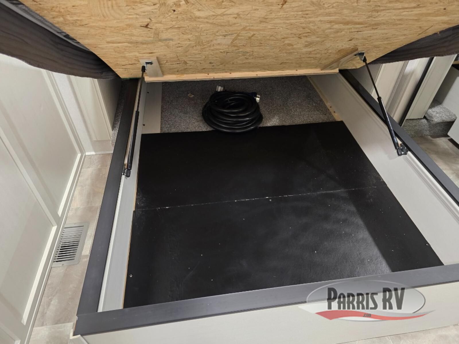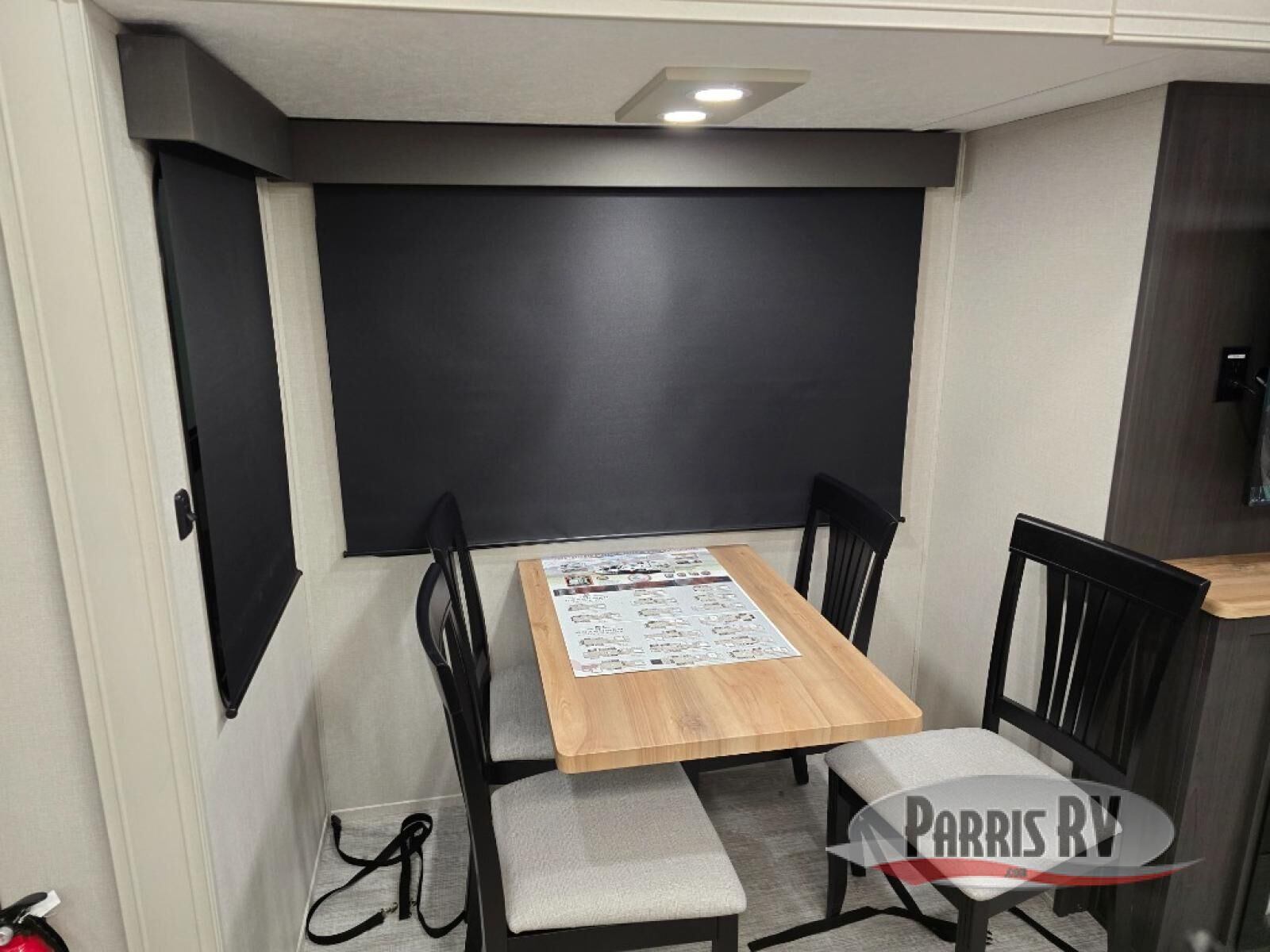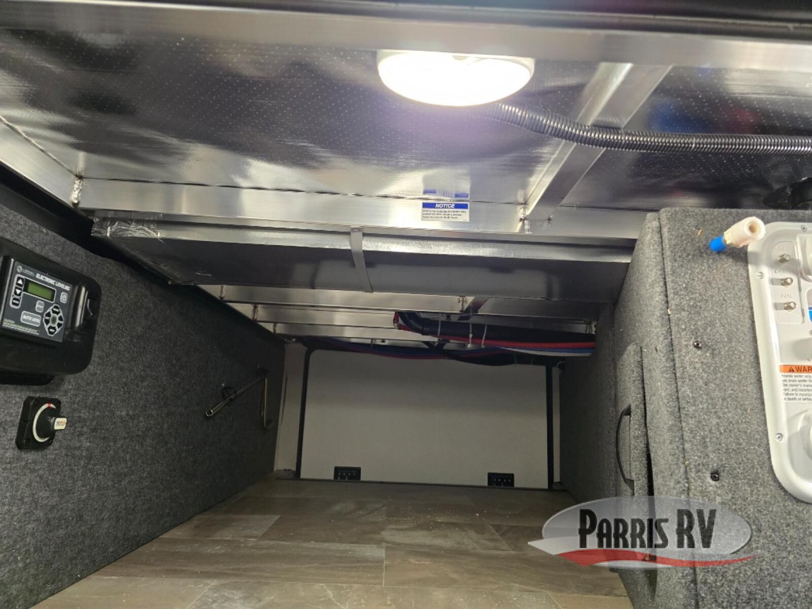 This lightest fifth wheel in the Chaparral line-up will provide hassle-free towing and camping. You will find dual opposing slides in the main living area for tons of space to stretch out, plus a kitchen island that will make this area feel more like home. There is theatre seating across from the entertainment center, and you can enjoy the 50" 4K Smart LED TV for movies. The fully-equipped kitchen includes a GE Profile stainless steel 30" residential microwave, a GE Profile 21" oven with a residential cooktop, and a overhead storage to keep kitchen necessities close by. And don't overlook the front private bedroom with a queen bed, dresser, plus a large wardrobe with washer and dryer prep!