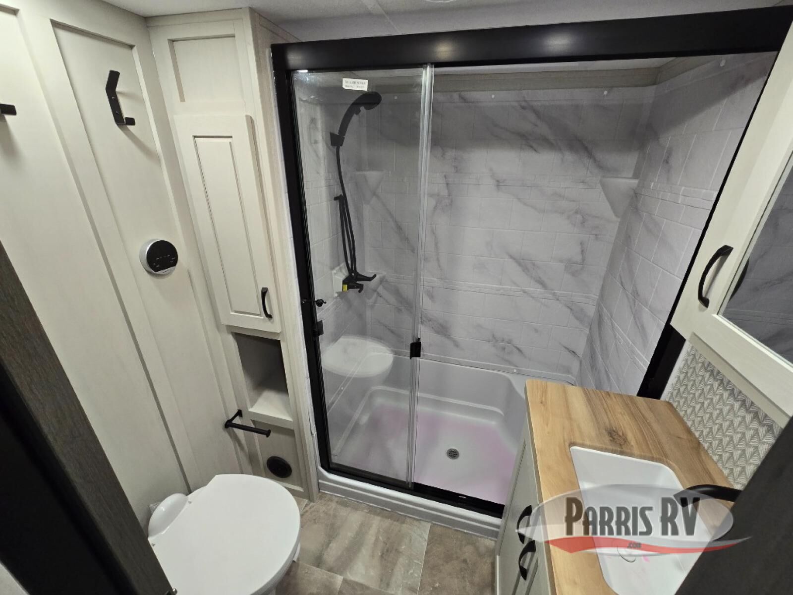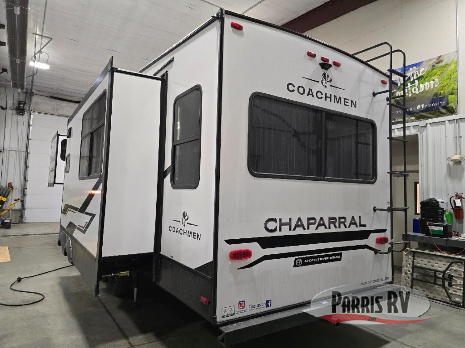 Each Chaparral mid-profile fifth wheel by Coachmen is designed with residential features, loads of storage space, and roomy bedroom suites to make you feel right at home. The durable construction means you can enjoy your RV for years to come. There's 6X double Azdel aluminum cage sidewall system, Weather Shield+ technology, and Tri-Tex powder coated frame technology that will allow you to camp year around. Each model includes a Winegard Air 360+ HDTV/radio dome antenna to help keep you connected as you camp, slow rise blackout roller night shades, a new 16 cu. ft. side-by-side stainless glass 12V refrigerator, and a modern electric fireplace to make your space cozy. There is also a large transom window in the kitchen, a modern high-rise faucet, LED motion sensor lights in the bathroom, plus a full-size shower with glass doors and a seat. Now that's what I call luxury! Choose a Chaparral fifth wheel today!