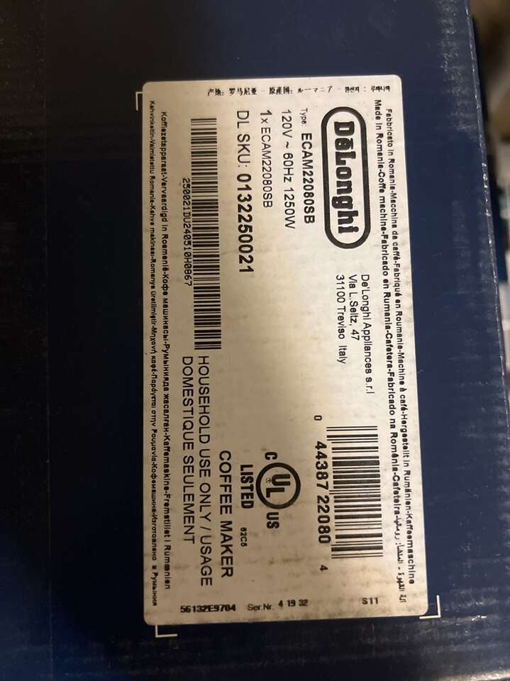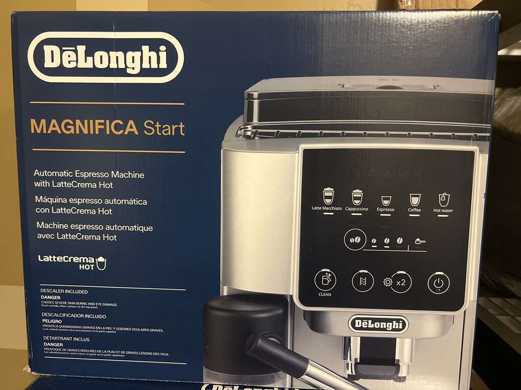 New De'Longhi Magnifica Start Espresso & Coffee Machine with Automatic Milk Frother, One Touch Latte, Cappuccino, Built-in Grinder, Silver, ECAM22080SB.