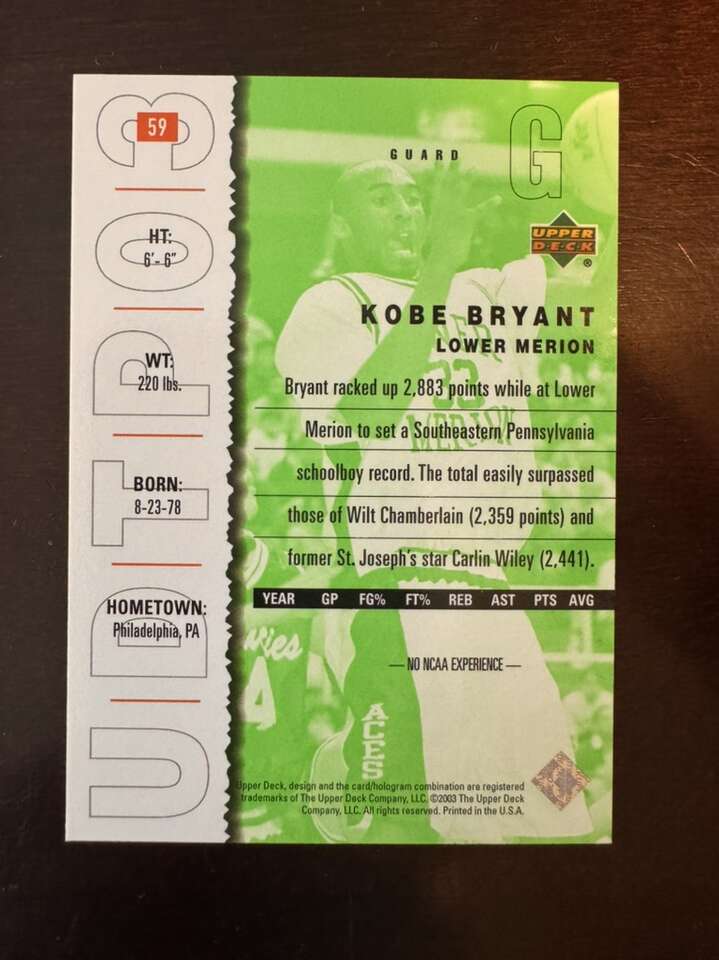 2003 Upper Deck Kobe Bryant Top Prospects #59 Lower Merion