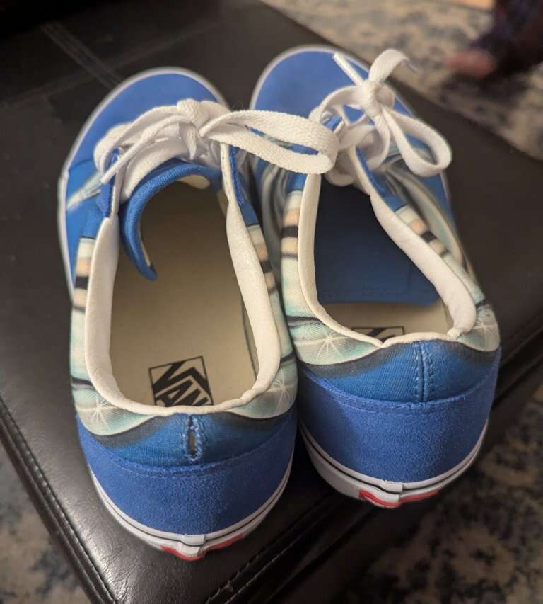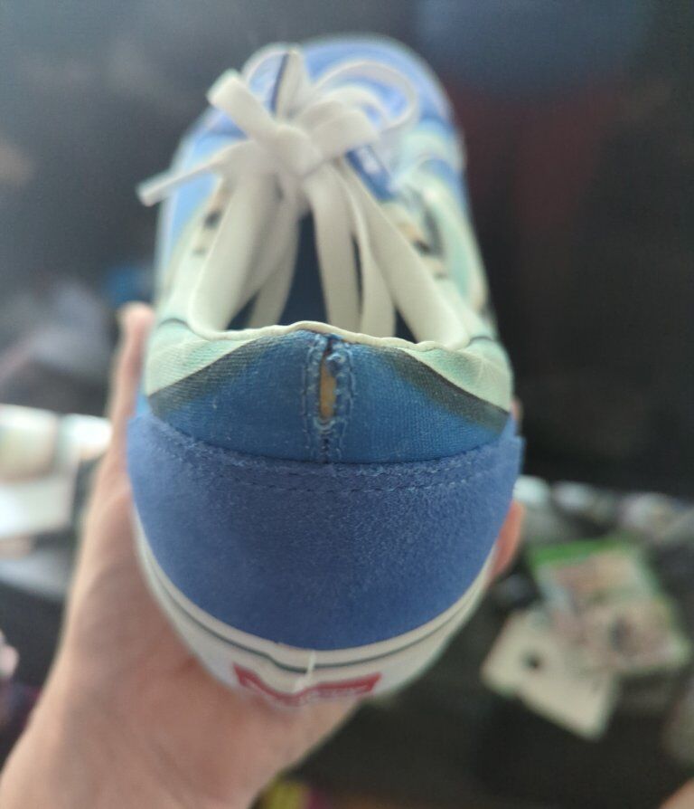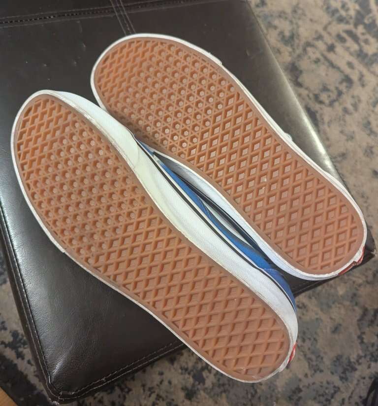 VenmoThese are like new. There's practically no wear showing on the bottoms and the only thing I could see is a slight tear in the fabric on the back of the left shoe. Super cool old school looking Vans for a great price! Vans Old Skool Warp Mens Size 12 Low-Top Skate Shoes Trainers
