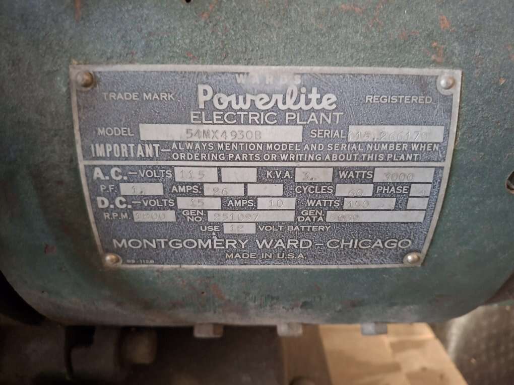 Montgomery Ward Powerlite Electric plant Model 54mx4930b