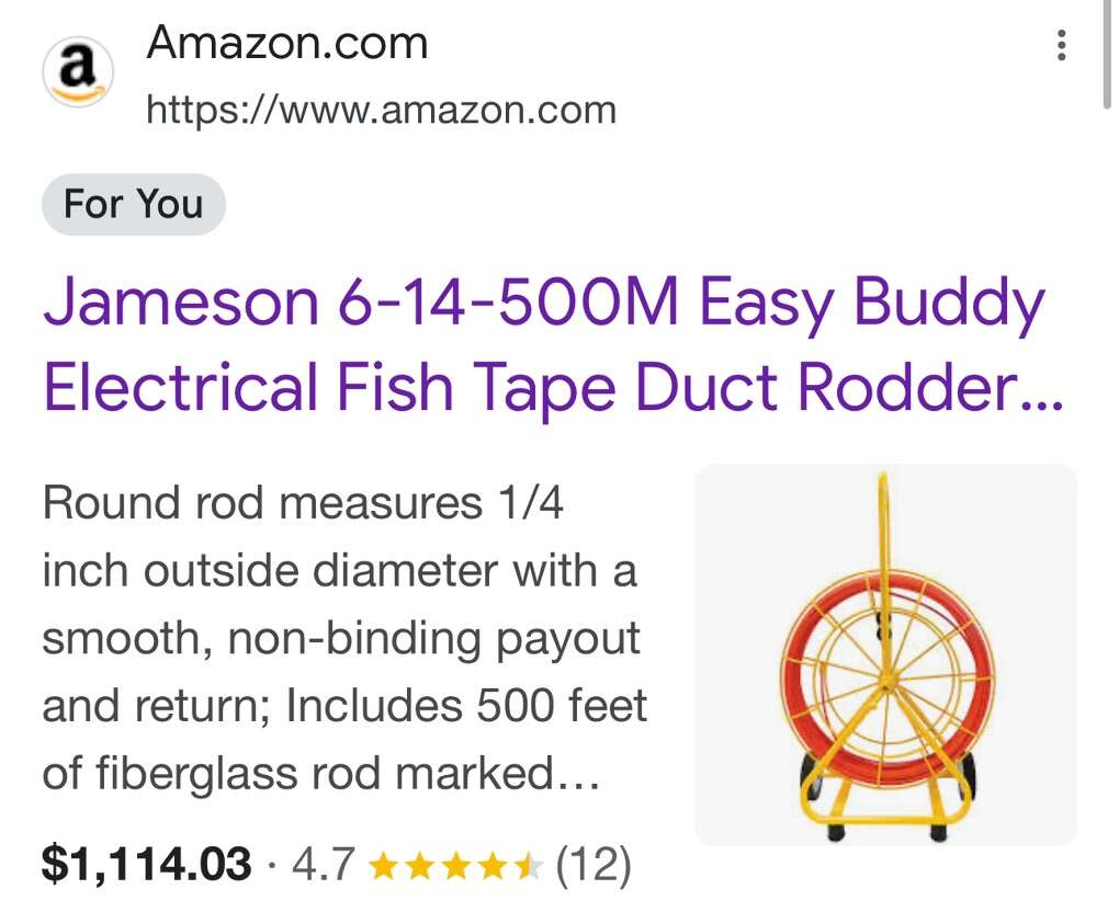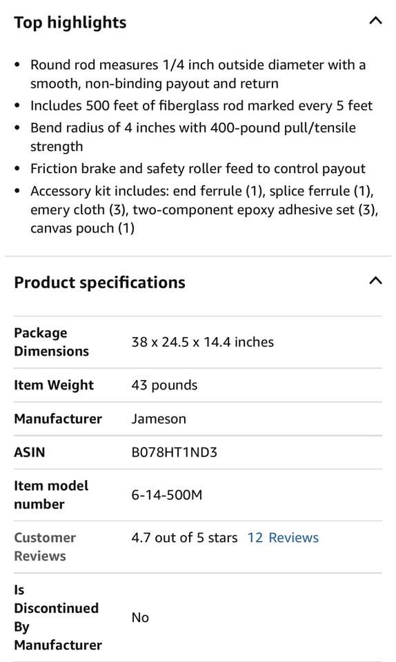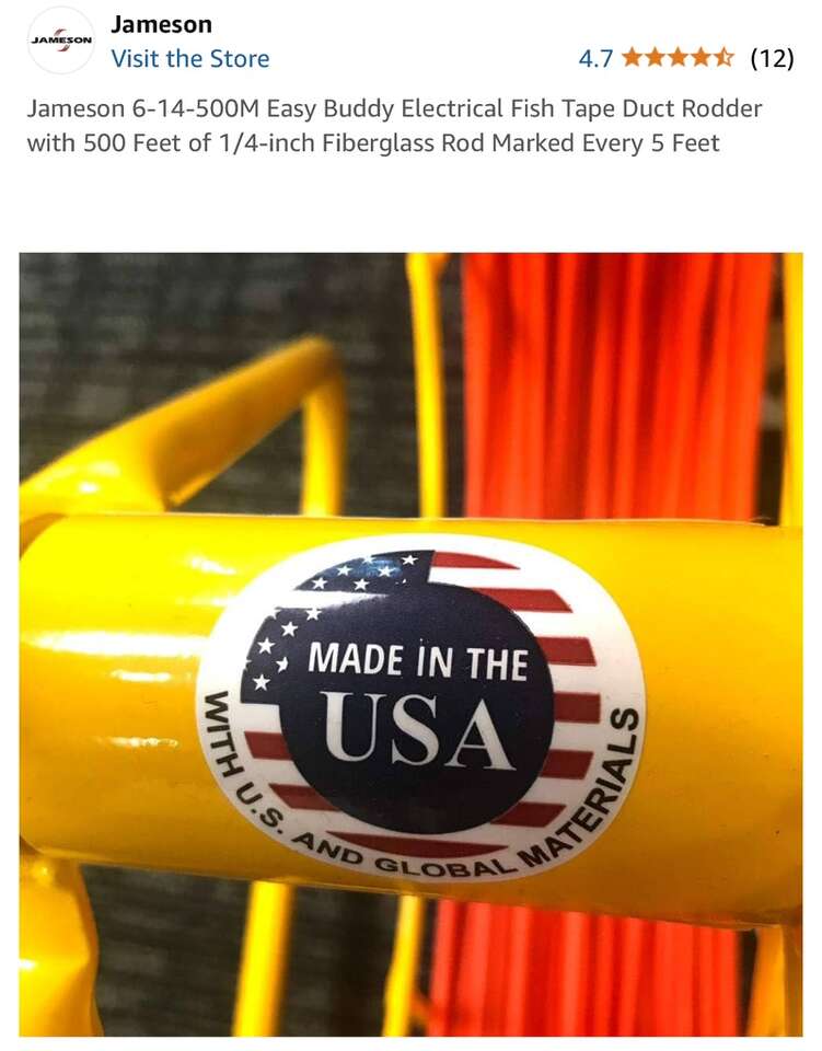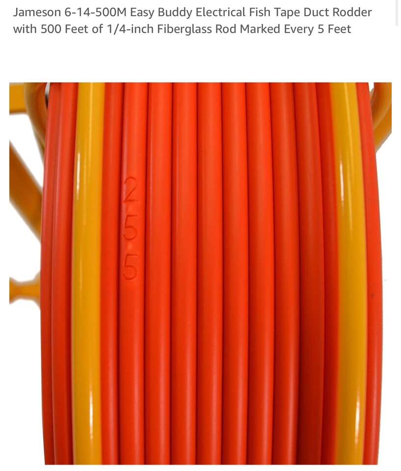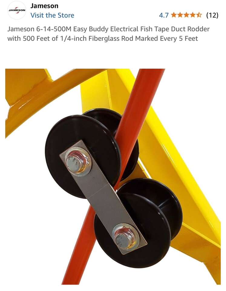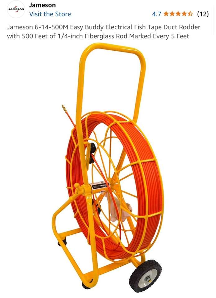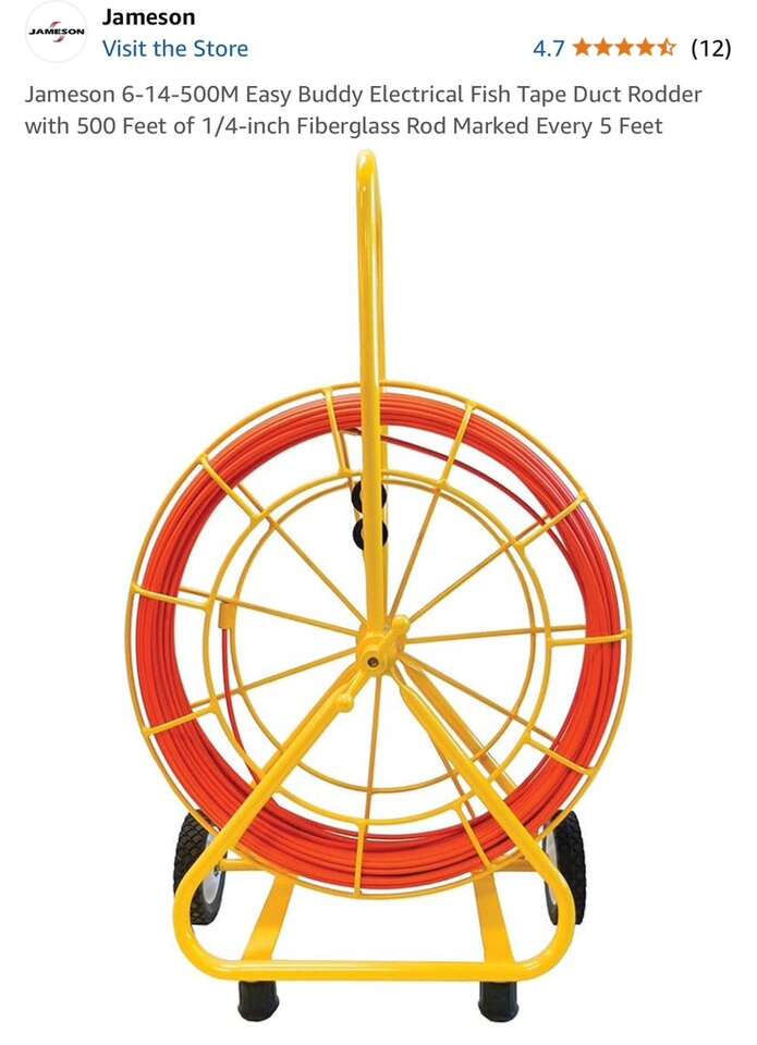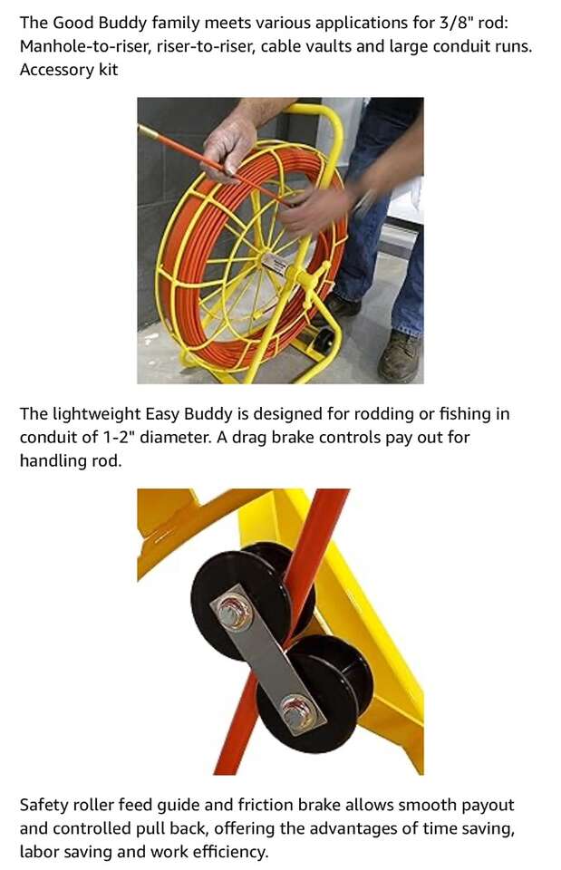 Description- Easy Buddy fiberglass conduit fish tape/rotter with 500’ of 1/4” fiberglass rod marked every 5’. *ALTHOUGH THIS ITEM IS BRAND NEW IT DOES HAVE SOME MINOR SCRATCHES IN THE YELLOW PAINT FROM SHIPPING. See photos for more product information and specifications.