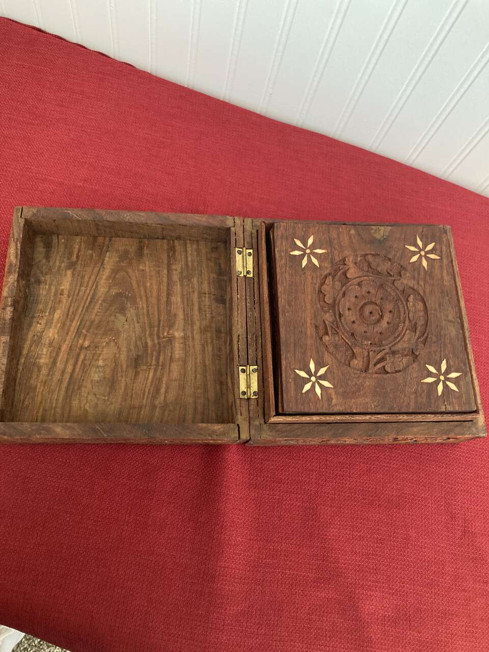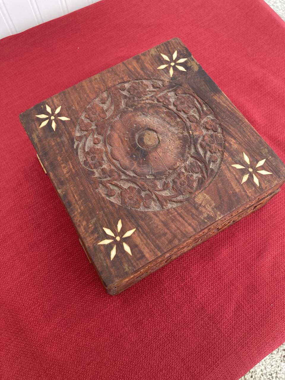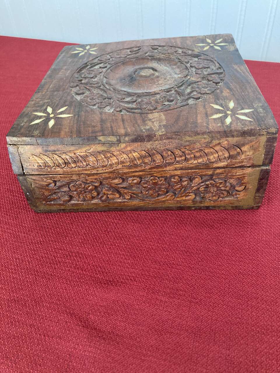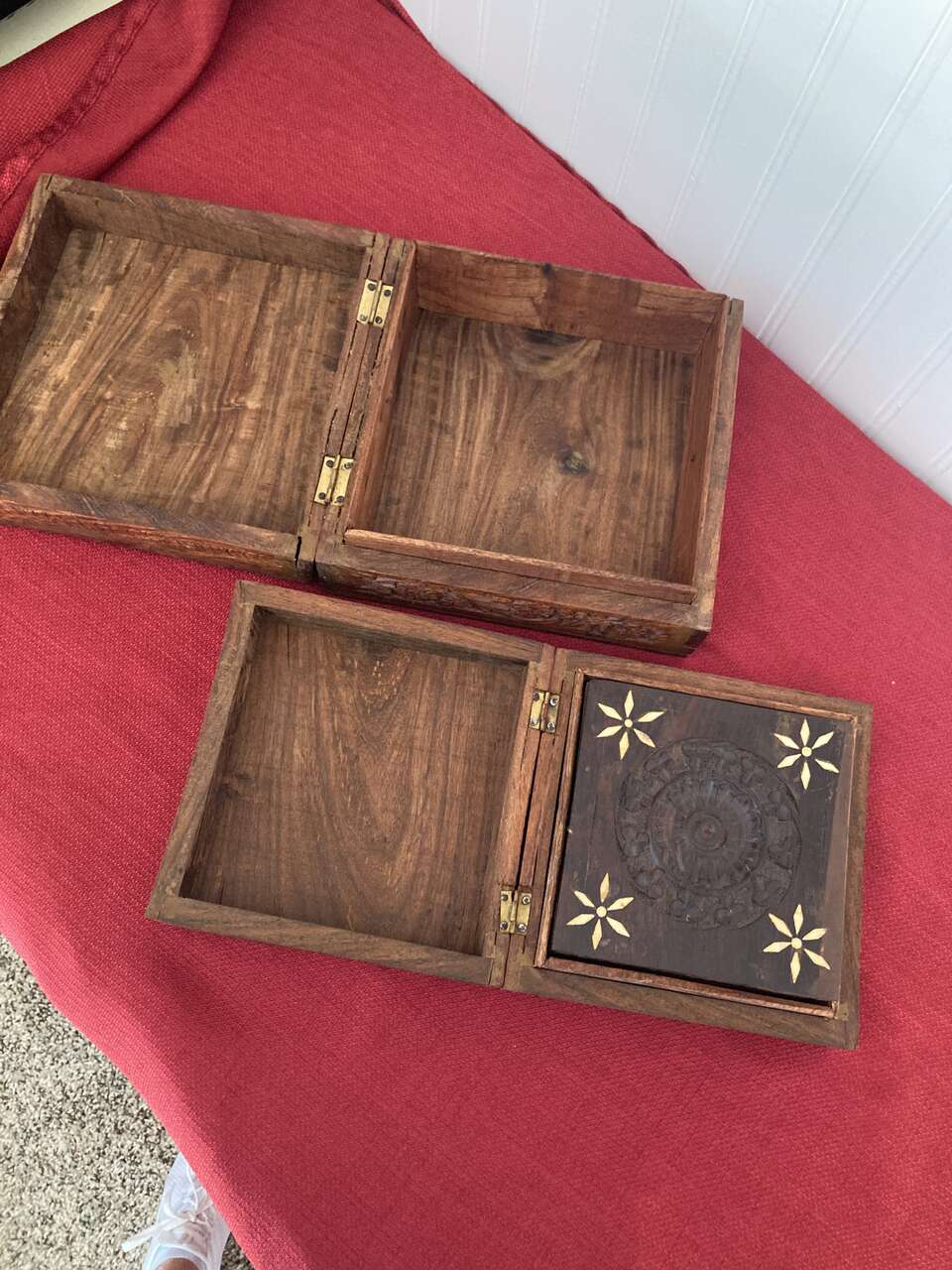 3 Rosewood Nesting Boxes - Hinged lids, Inlaid Flower Pattern on all three lids