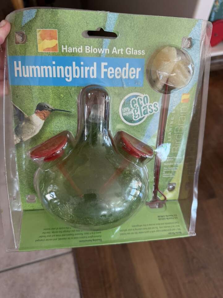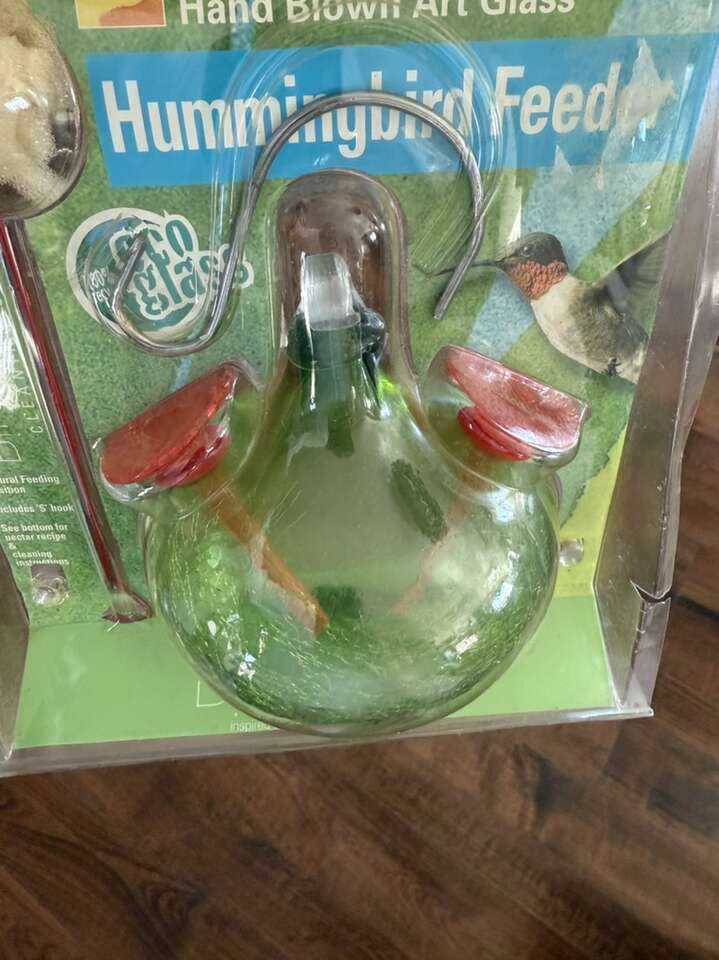 New! Hand blown art glass hummingbird feeder