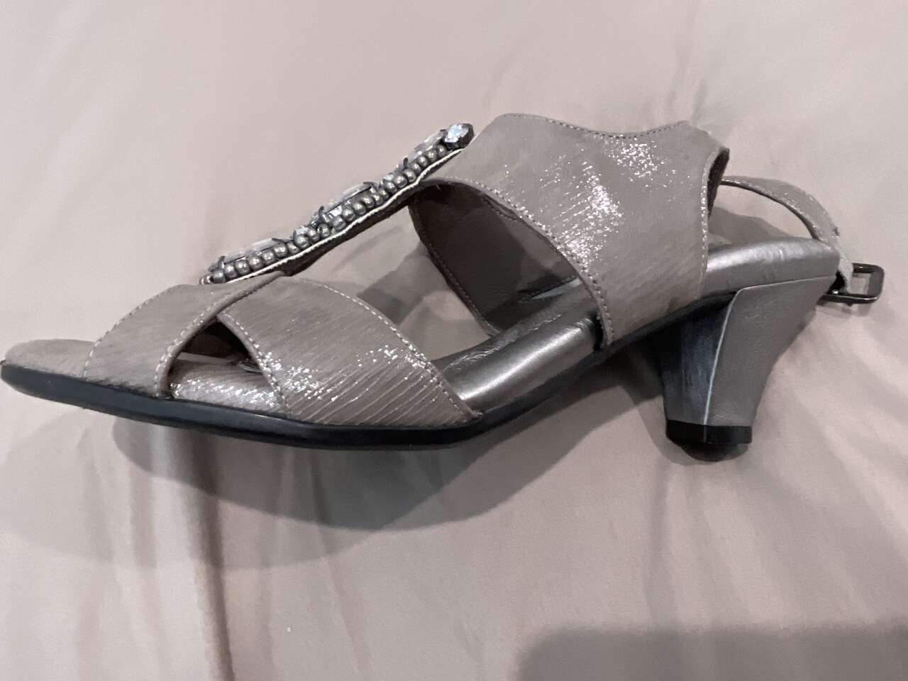 VenmoWomen's Grey Sandals with silver gems, 2 1/2 inch heel, size 7 1/2, Never worn. $20. Cash or Venmo. Text 801-560-0659. No Codes.