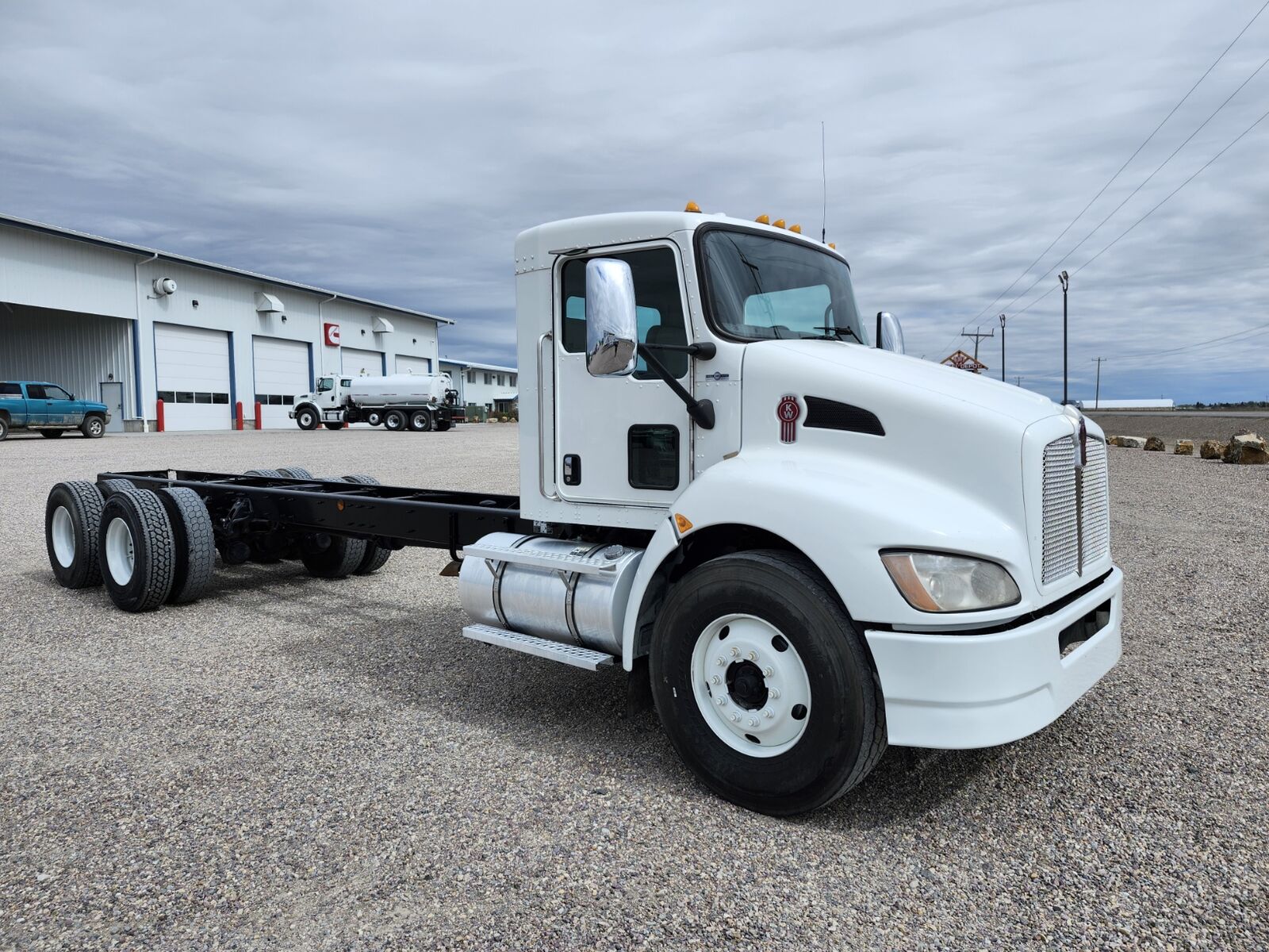 Allison 3500RDS transmission with PTO provision, Dual lockers, Double frame, Paccar PX9 330HP, Engine brake, 14,600 FA-40,000 RA, 160" Cab/trunnion- 21'6" Overall frame length, 4.88 Ratio, Kenworth 4 bag air ride suspension, Cruise, A/C, Power door locks, Power/heated mirrors, Power passenger window, Tilt wheel, Engine block heater, Ready for farm bed!! 2020 Kenworth T370