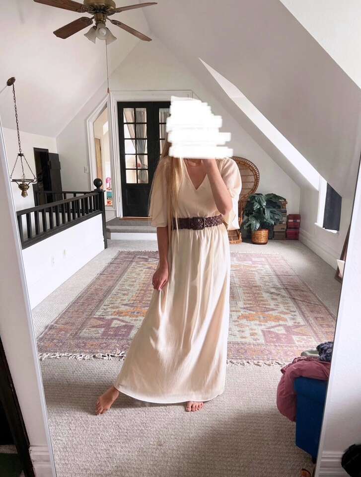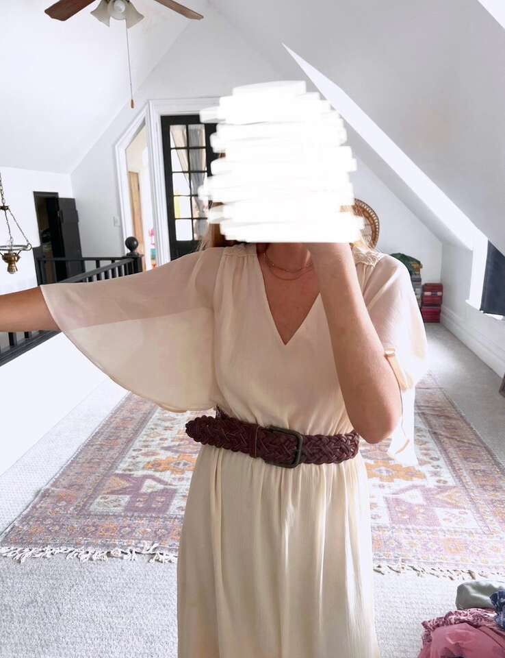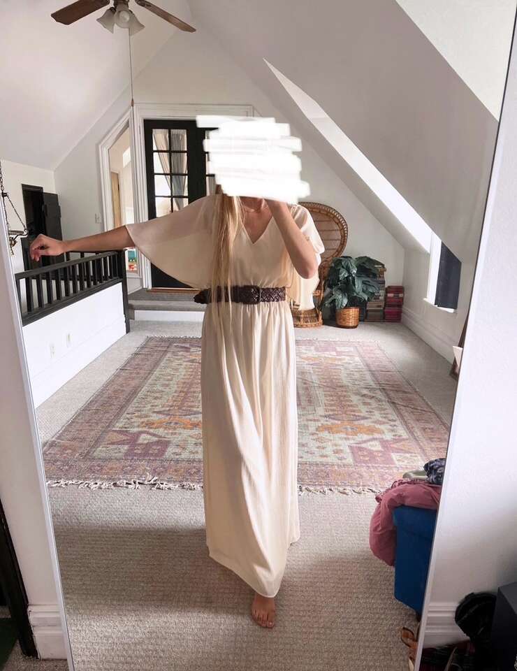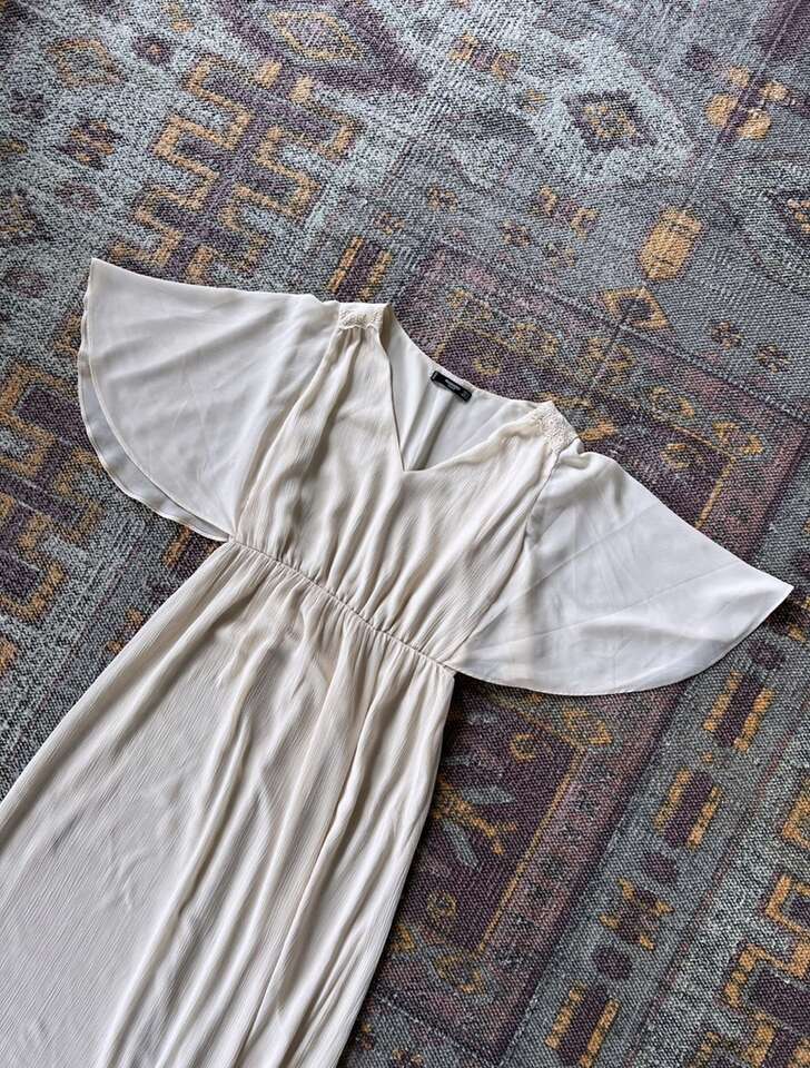 VenmoCream Angel Sleeve Maxi Dress Brand is Mango from ASOS Size US 2 Beautiful angel sleeves Stretch band waist Super pretty styled with or without a belt. Belt not included. Worn once for a wedding. Paid close to $100 Cash or Venmo. Will hold with Venmo payment.
