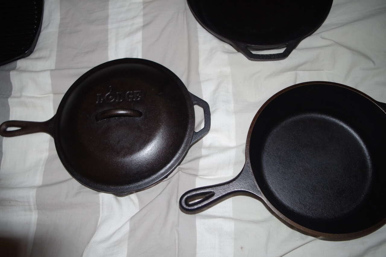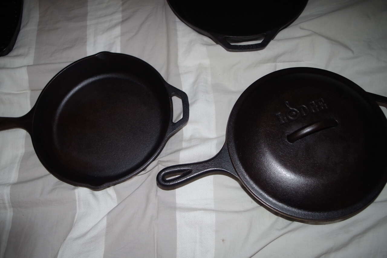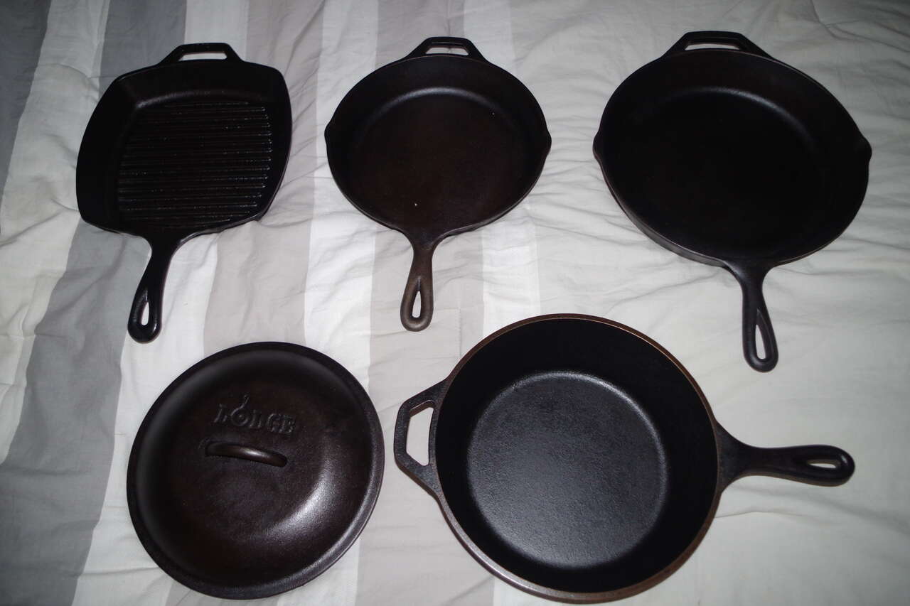 I have four Lodge cast iron cook pans that I would like to sell as a set. These are current production Lodge. Meaning they've all been manufactured within the last 20 years. I have cleaned them all up and re-seasoned them at least three times in addition to the factory seasoning. They are all better than new.