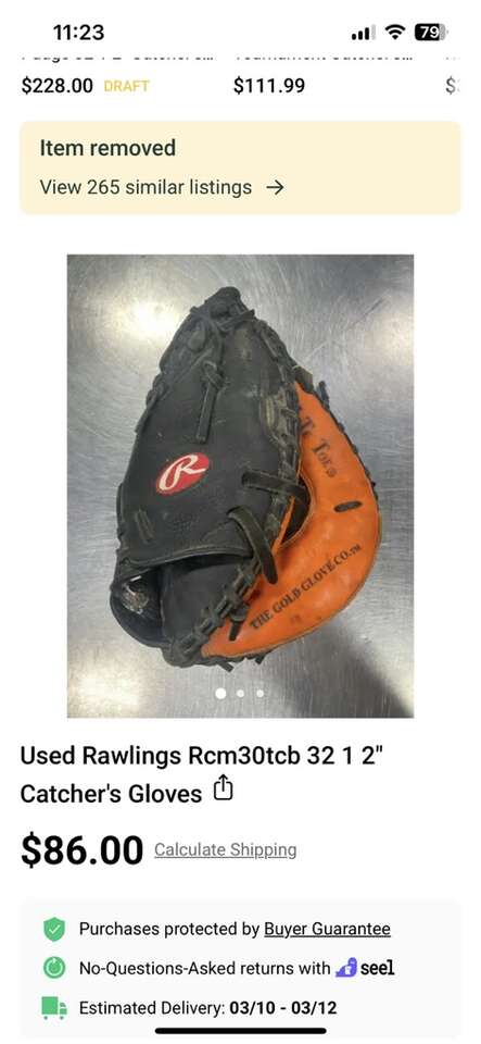 VenmoLike new in excellent condition all leather Rawlings catchers mitt baseball glove model RCM30TCM for a right handed player. Mitt is worn on the left hand and player throws with their right hand. Clean. Smoke free home. Flexible condition. Cash or Venmo. Porch pickup from Alpine.