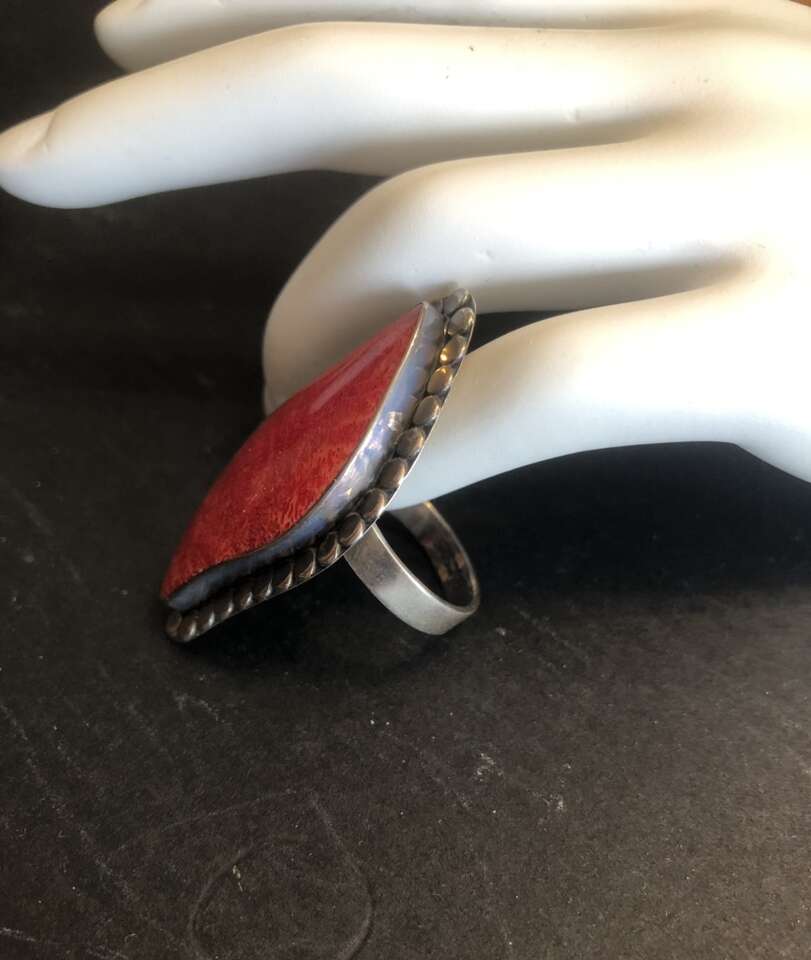 Adjustable to any size finger, this sterling silver and red coral ring is an amazing statement piece! New in box.