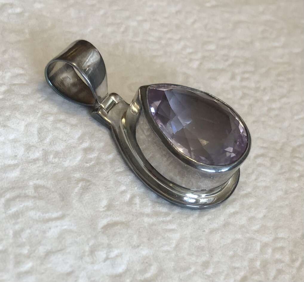 18.89 Ct teardrop pink amethyst in a simple yet elegant sterling silver pendant. 4 cm x 2.5 cm. New in box!