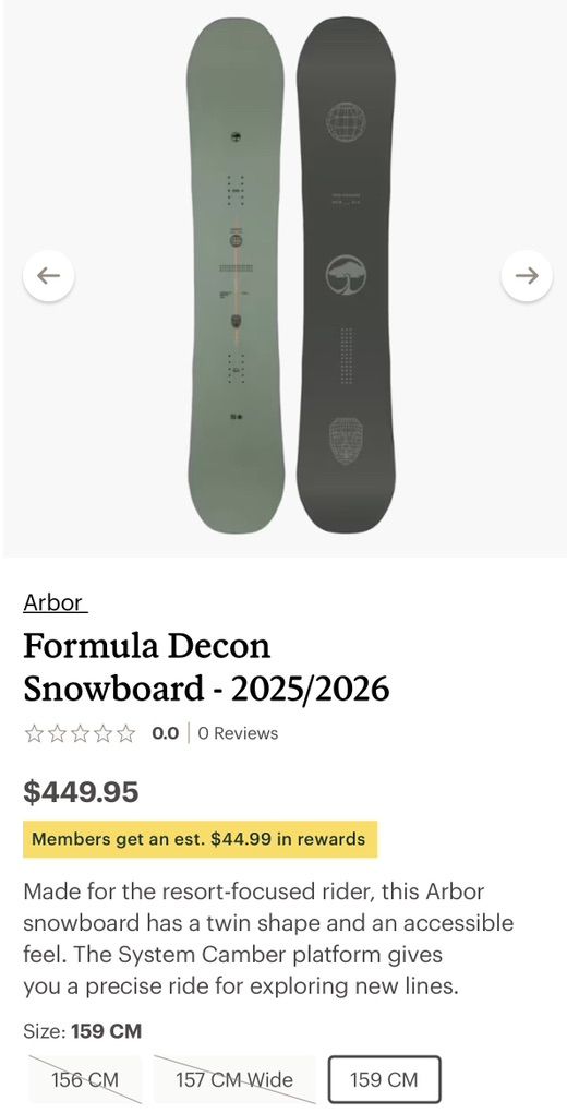 New Arbor Formula Decon Snowboard 159cm