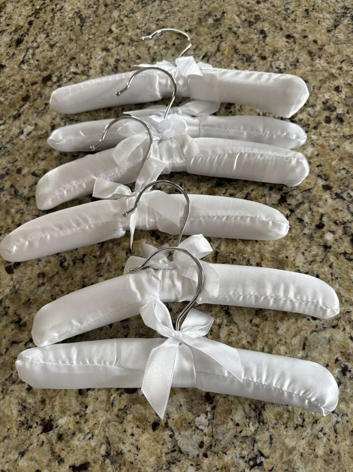 White satin toddler kids hangers 10” wide set (6 total) NEW!