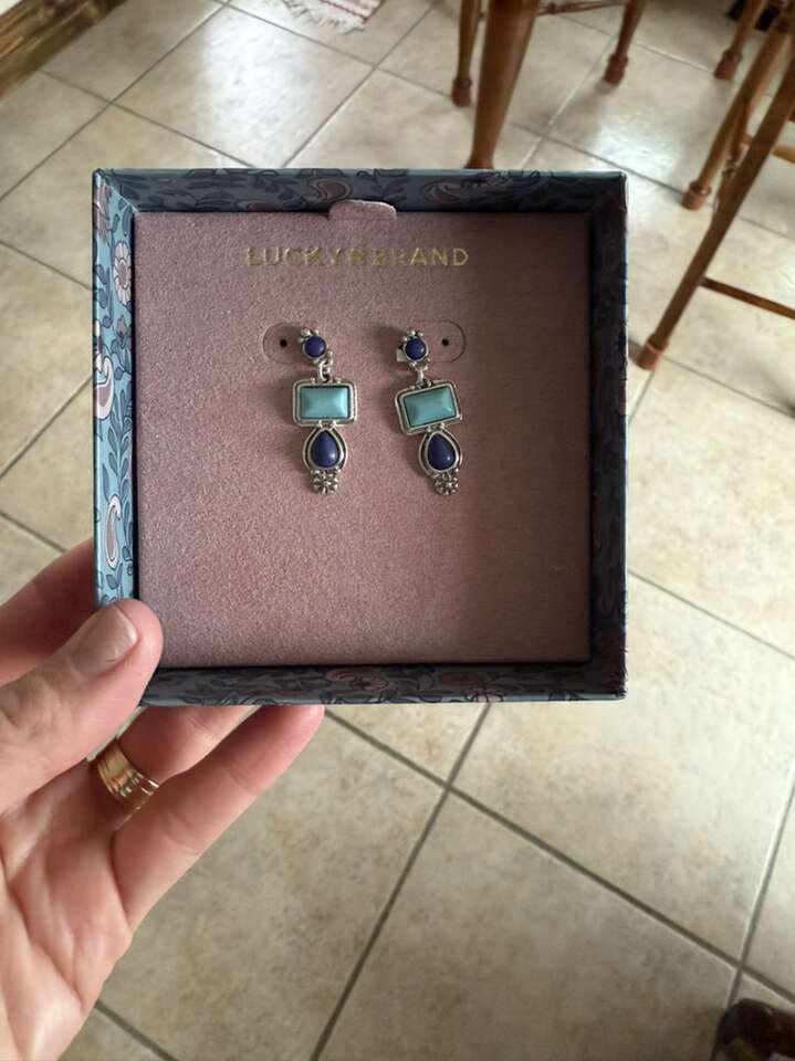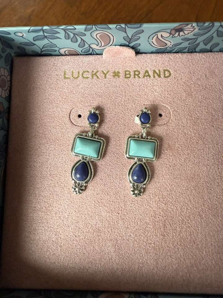 Lucky brand NEW earrings blue and silver 1 1/2 inch long