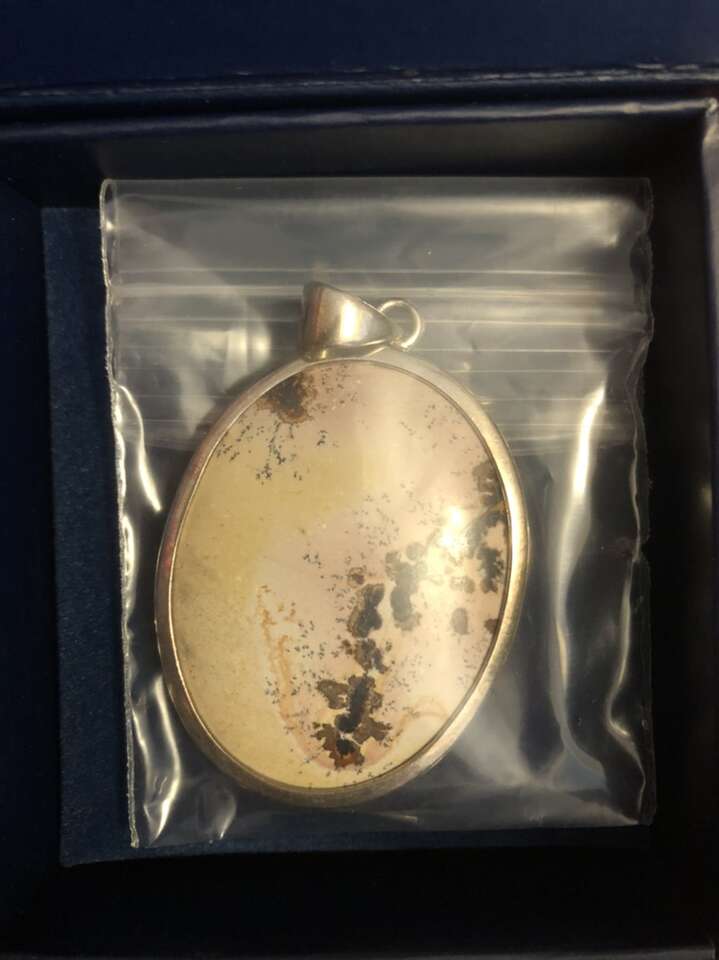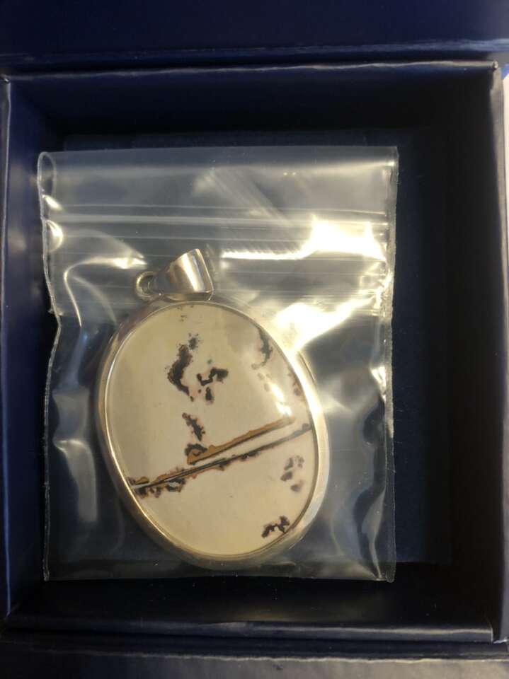 $29 each - 5 1/2 cm x 3 1/2 cm natural stone paintbrush jasper in sterling silver pendants. New in box!