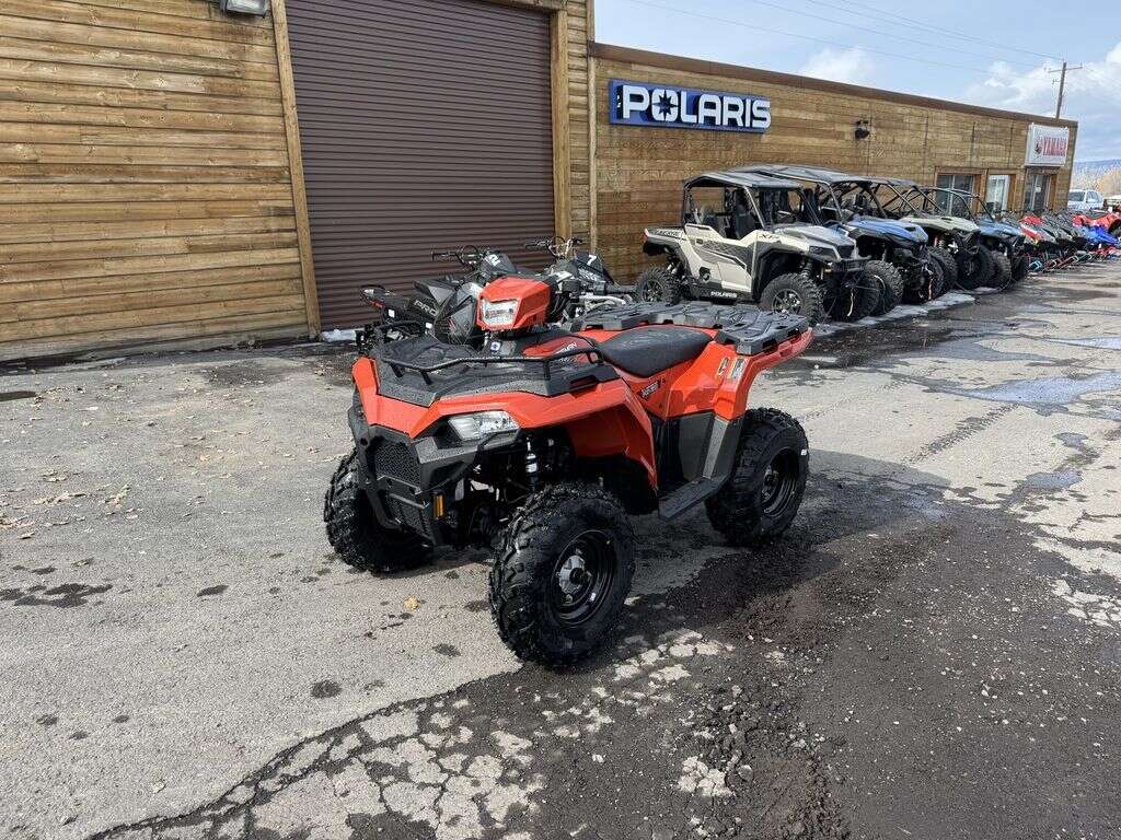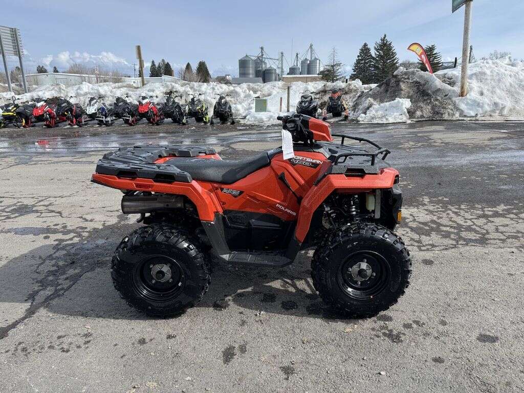 Give us a call or stop by for OTD pricing! 2025 Polaris® Sportsman 450 H.O.SPORTSMAN 450 PACKS MORE INEquipped with industry-leading towing, ground clearance and 5 gallon storage, the 450 adds more capability for work or play.Features may include:STRONGRelentless, job-ready features for the daily grind.Improved Fit and FinishNew shifter close-off and better seat fitment providing overall improved showroom appeal and enhanced ride comfort.Upgraded Clutch SealingTake on more trails with confidence with improved clutch airflow to help keep water out.1,350 Lb. TowingPull trailers, and other vehicles, with confidence thanks to a work-ready towing capacity.25" 6-Ply TiresEndure rough terrain with puncture-resistant walls and 12" steel wheels.33 HorsepowerSolid power for all-day riding in difficult conditions—or for when you just want to let it rip.SMOOTHLegendary Sportsman suspension delivers the smoothest ride to absorb bumps of all sizes.SuspensionIndustry-leading Sportsman suspension delivers more traction than the competition and helps you ride over even bigger obstacles.On-Demand AWDThe industry's fastest-engaging On-Demand AWD. Only Polaris delivers instant power when the slightest wheel spin is detected.Trail-Taming ClearanceEquipped with 11.5" of ground clearance to help you travel smoothly over rough terrain.Unmatched TravelNo one can match our suspension with a class-leading 9450 STANDARD FEATURESFront Rack Extender33 HP Engine48" Width11.5" Ground Clearance8.2"/9.5" Front/Rear Suspension Travel25" Tires with 12" Steel Wheels1,350 Lb. Towing Capacity with Factory-Installed Hitch ReceiverCombined 270 Lb. Front & Rear Rack CapacityPre-Wired for Handwarmers and WinchRIDE COMMAND+ with Accessory Purchase