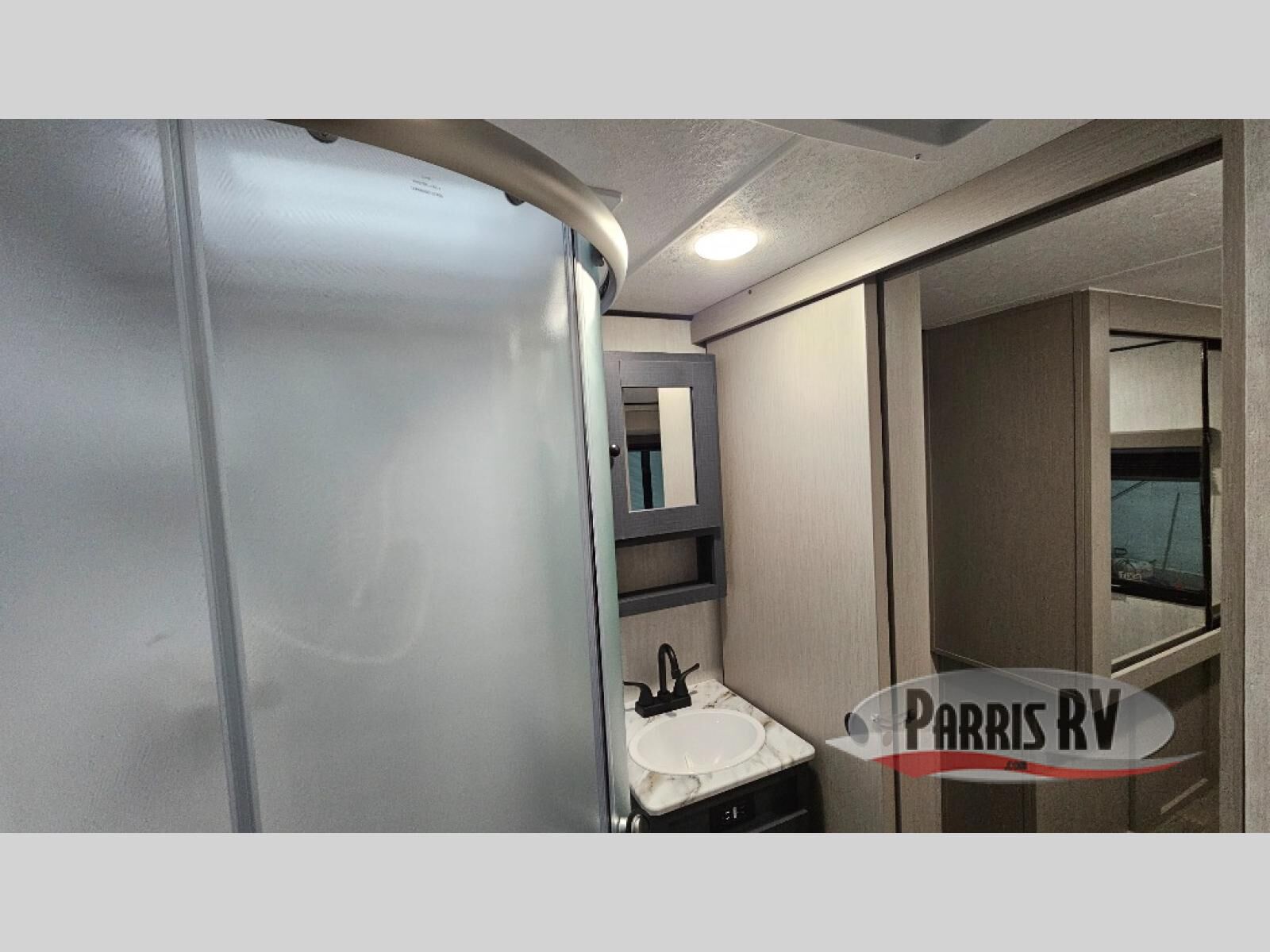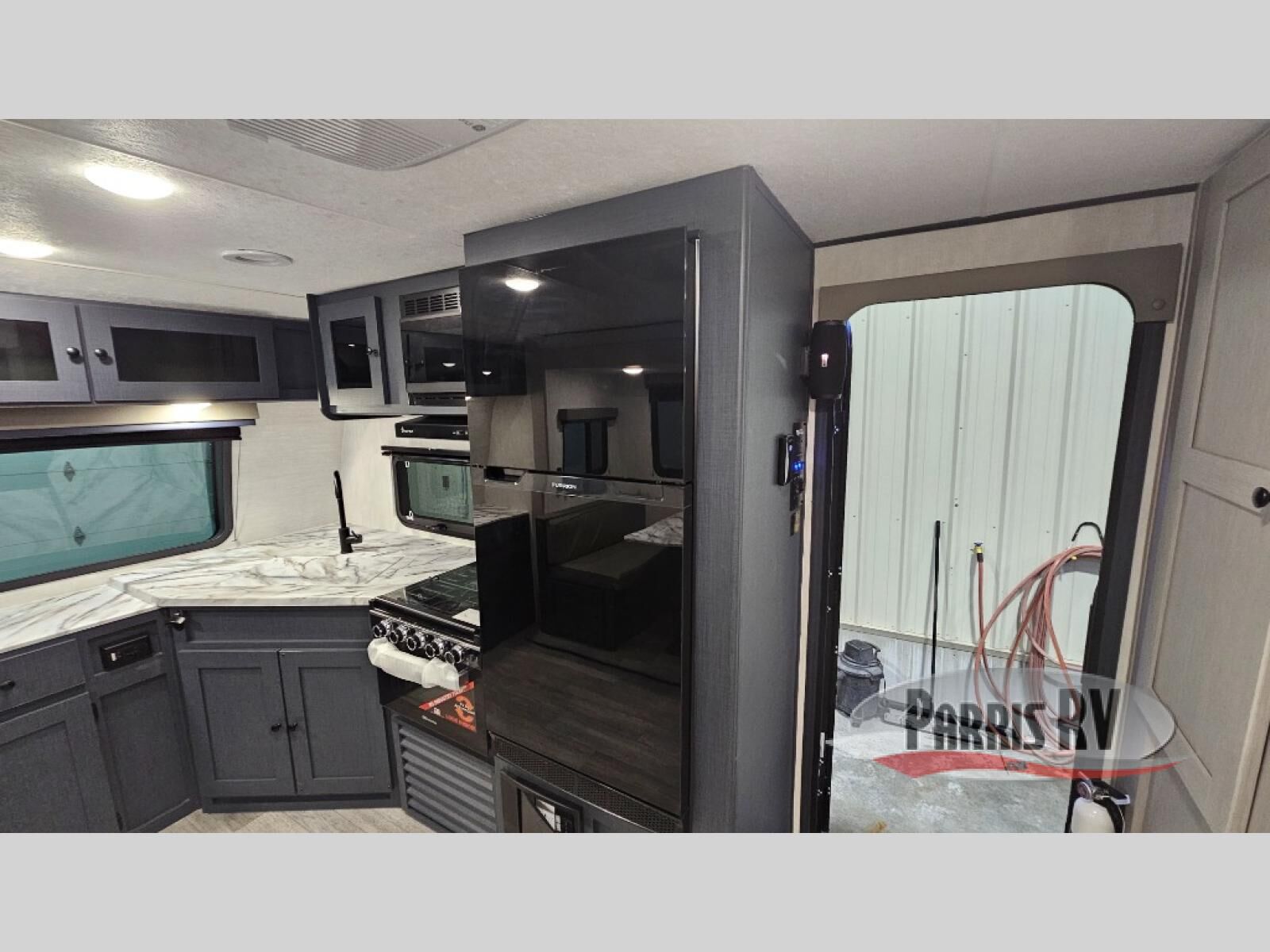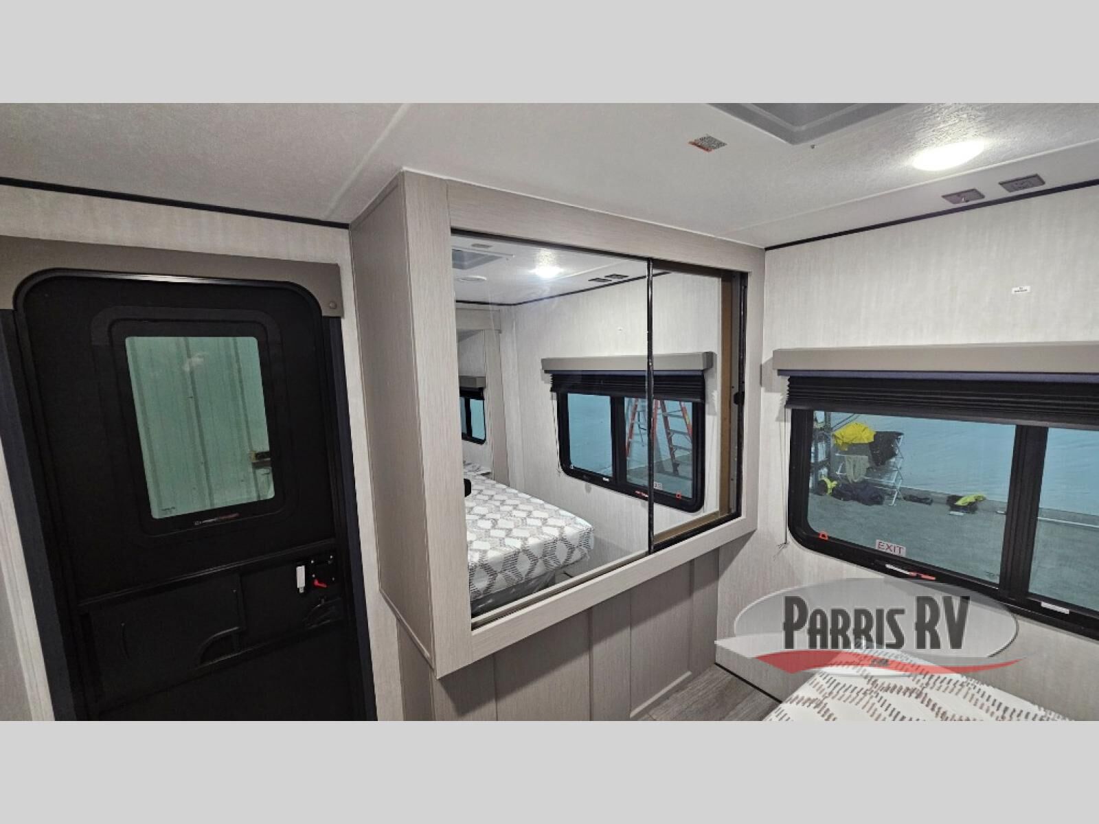 Enjoy each adventure camping in this Apex Ultra-Lite unit featuring dual entry doors. There is sleeping for up to six with the convertible dinette and sofa, plus a queen bed slide in the rear private bedroom that includes super storage beneath. This bedroom also features a large wardrobe near the private bedroom entry door. The front kitchen has everything you need to prepare hearty camp meals easily thanks to the large counter space for prepping. A booth dinette and sofa slide offer seating for everyone and all will easily be able to view the entertainment center with TV and cozy fireplace from either one**.** A large pantry is conveniently located just inside the main front entry door where you can quickly grab a snack for outside, or load up groceries once you shop for your trip. You will also love the exterior camp kitchen to cook meals outdoors!