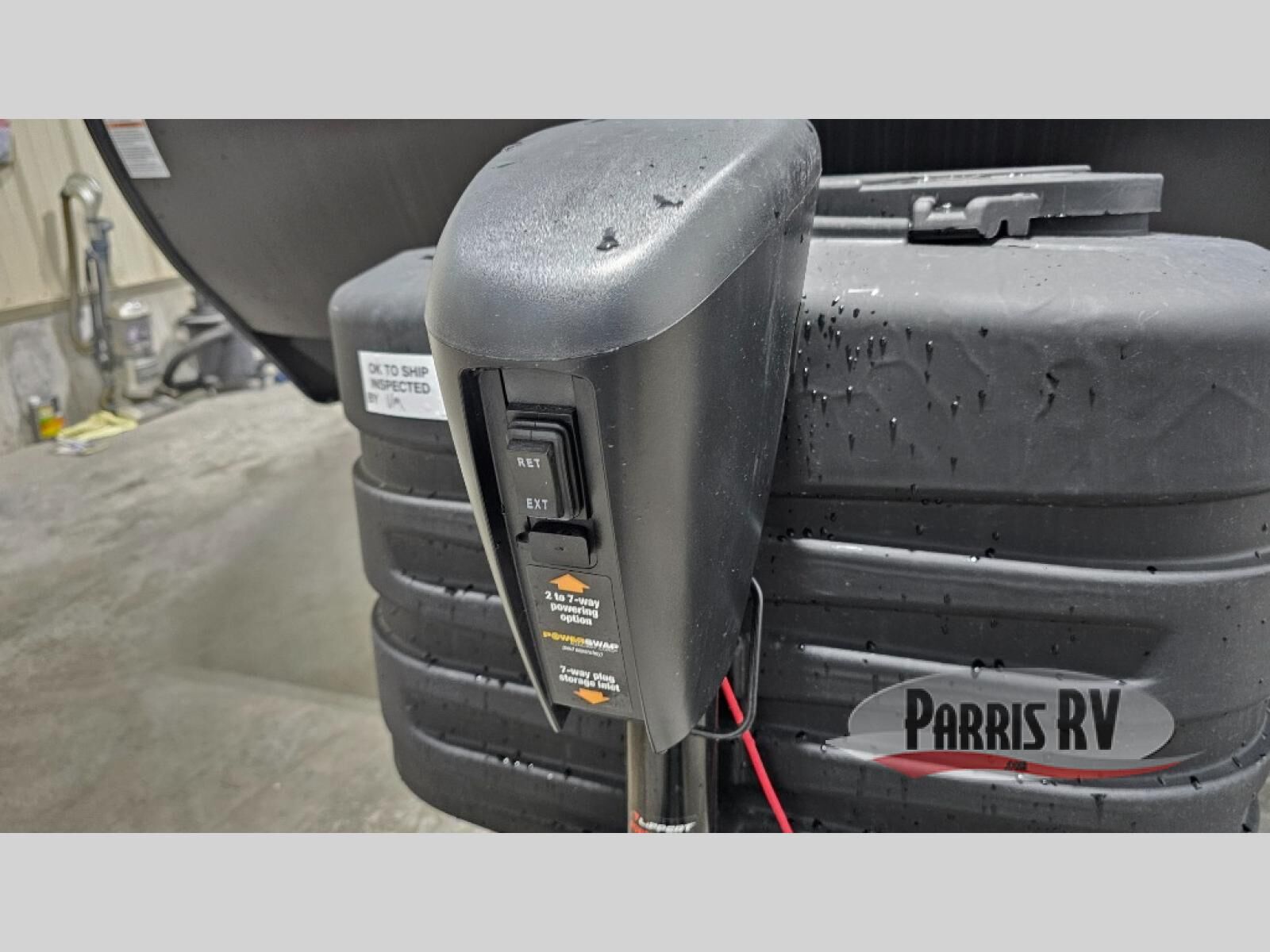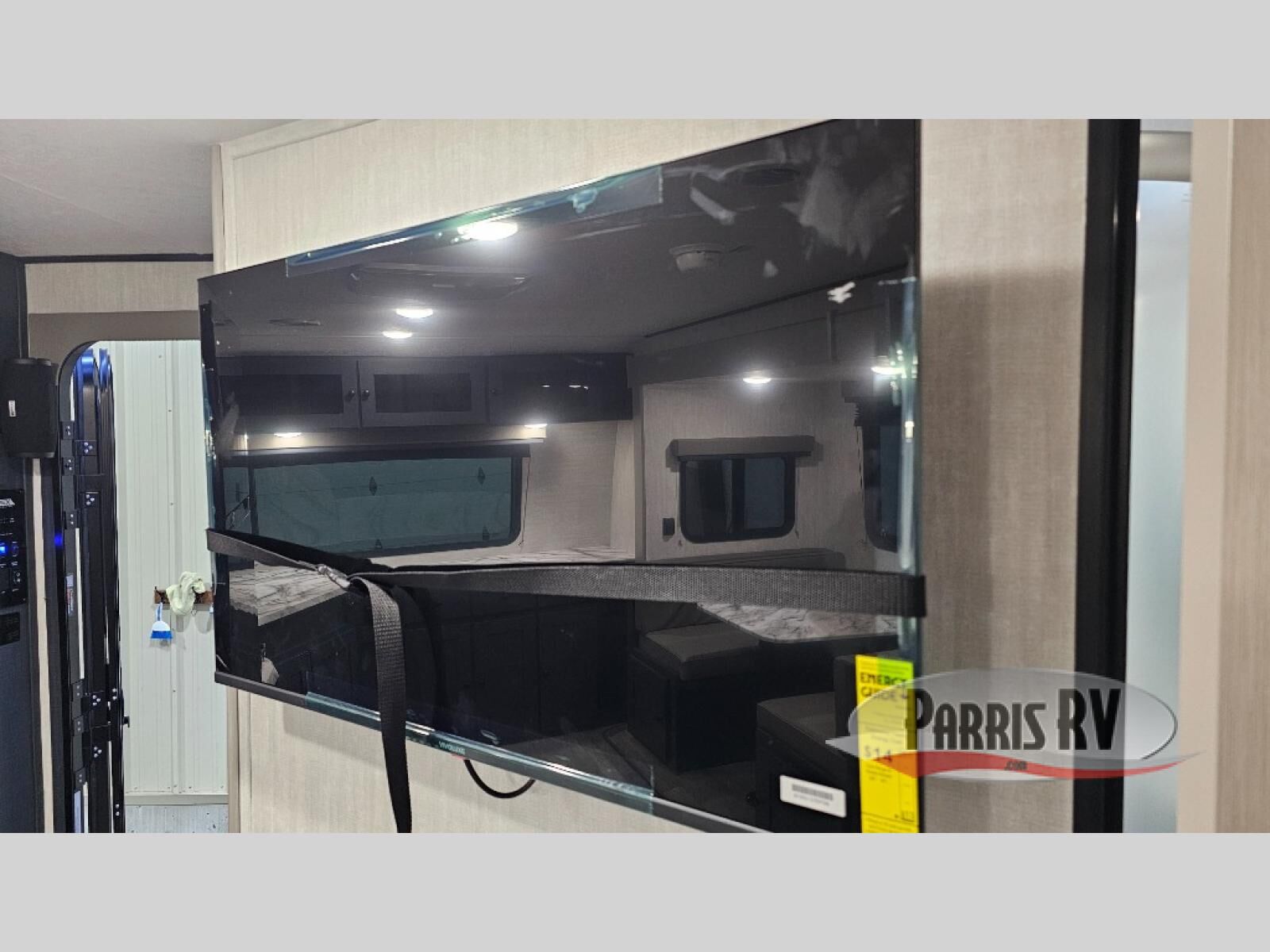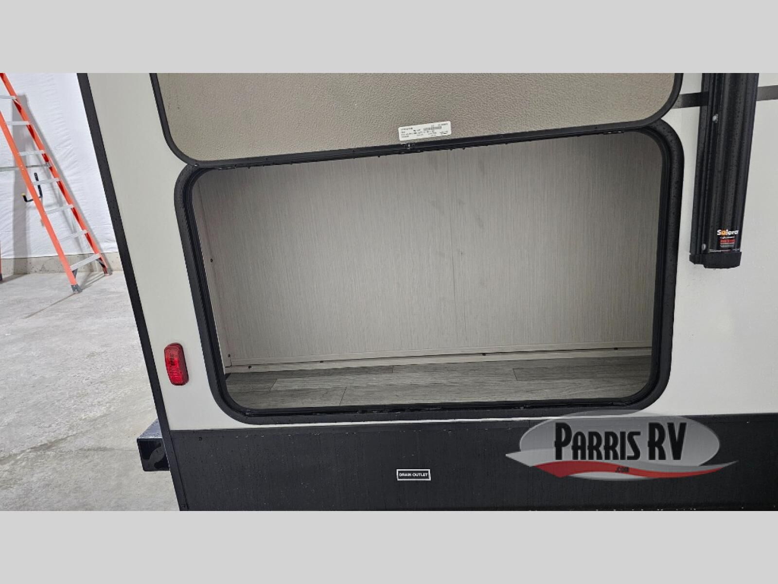 Enjoy each adventure camping in this Apex Ultra-Lite unit featuring dual entry doors. There is sleeping for up to six with the convertible dinette and sofa, plus a queen bed slide in the rear private bedroom that includes super storage beneath. This bedroom also features a large wardrobe near the private bedroom entry door. The front kitchen has everything you need to prepare hearty camp meals easily thanks to the large counter space for prepping. A booth dinette and sofa slide offer seating for everyone and all will easily be able to view the entertainment center with TV and cozy fireplace from either one**.** A large pantry is conveniently located just inside the main front entry door where you can quickly grab a snack for outside, or load up groceries once you shop for your trip. You will also love the exterior camp kitchen to cook meals outdoors!