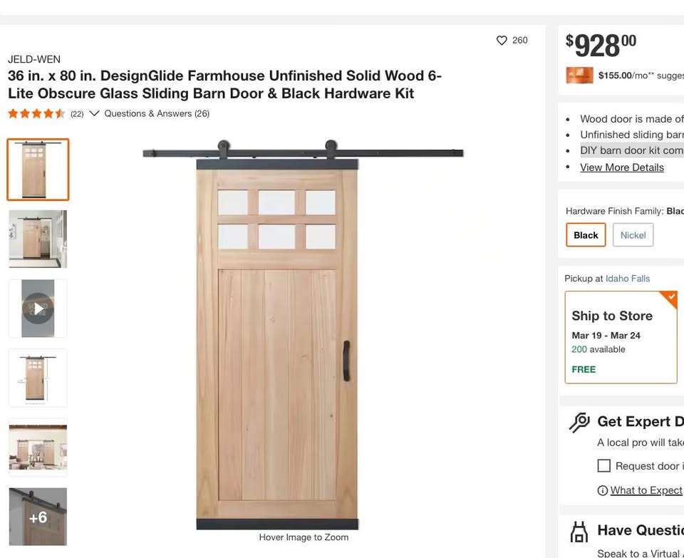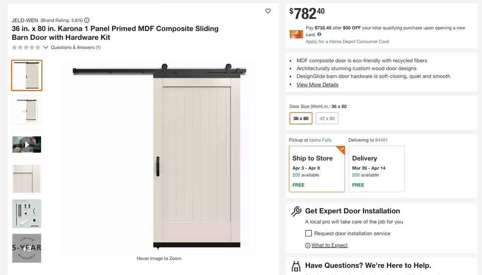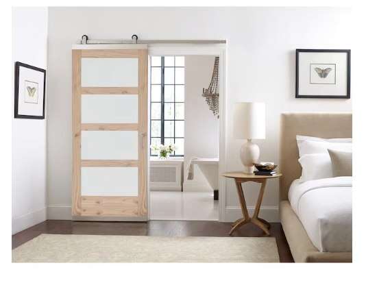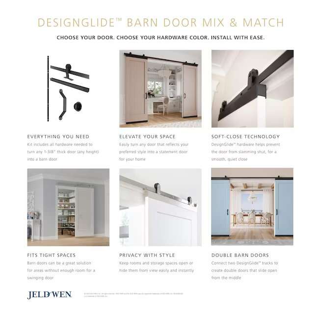 Each DIY barn door kit comes with door slab, hardware, and handles.