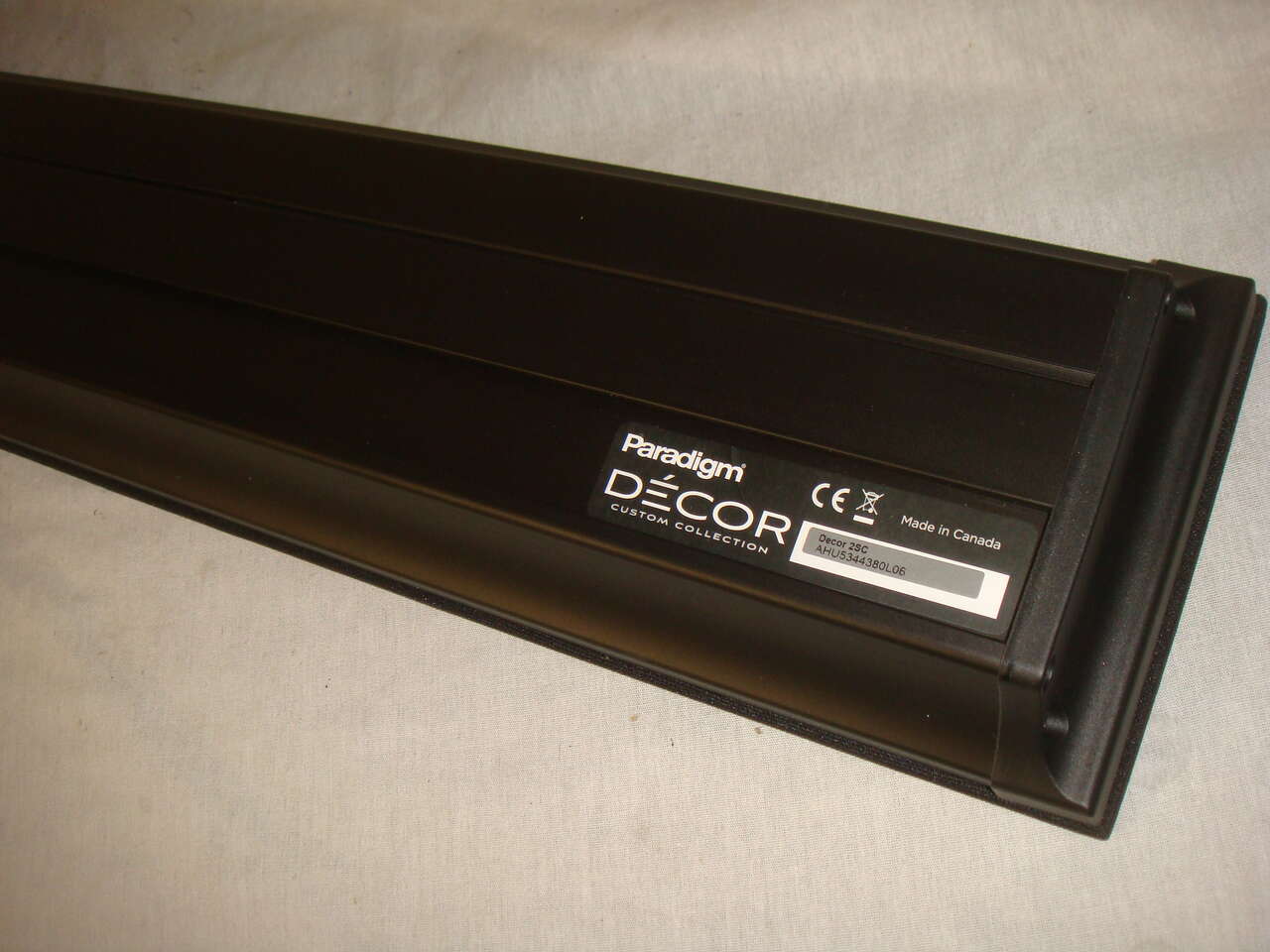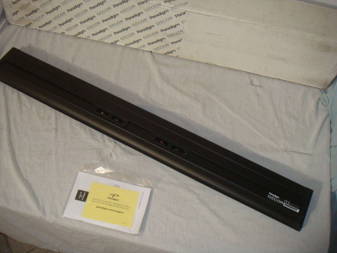 ONE PARADIGM DECOR 2SC CUSTOM COLLECTION STEREO SOUNDBAR. This is a new, open box speaker that was never mounted or used. It is a 2-channel soundbar that is 43 1/16" long by 5 5/16" wide by 2 2/16" deep. It works perfectly and sounds great! It comes with everything shown in the photos. These are normally $1249 each. This is your chance to save big-time so don't miss out!!
