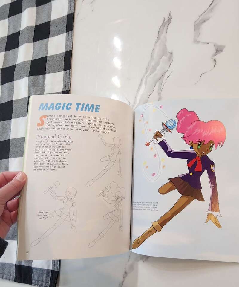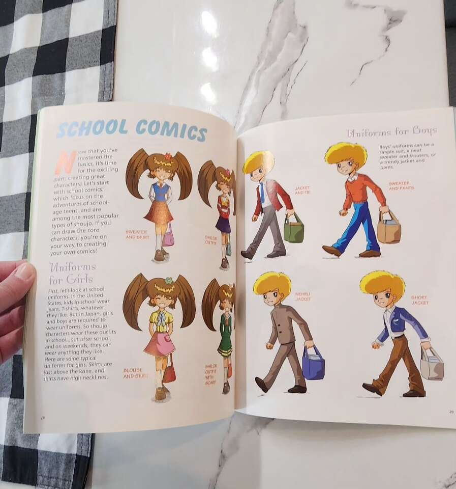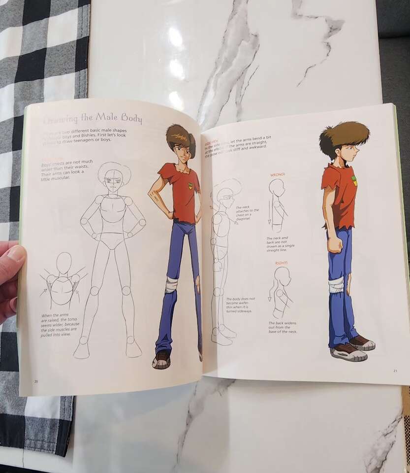 my daughter didn't use this an no longer wants it. Has good instructions to learn how to draw Manga characters. In great condition with a small bend on the bottom corner of the cover.