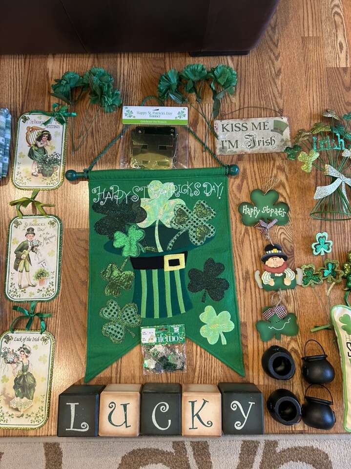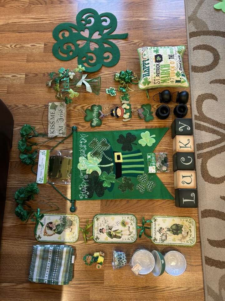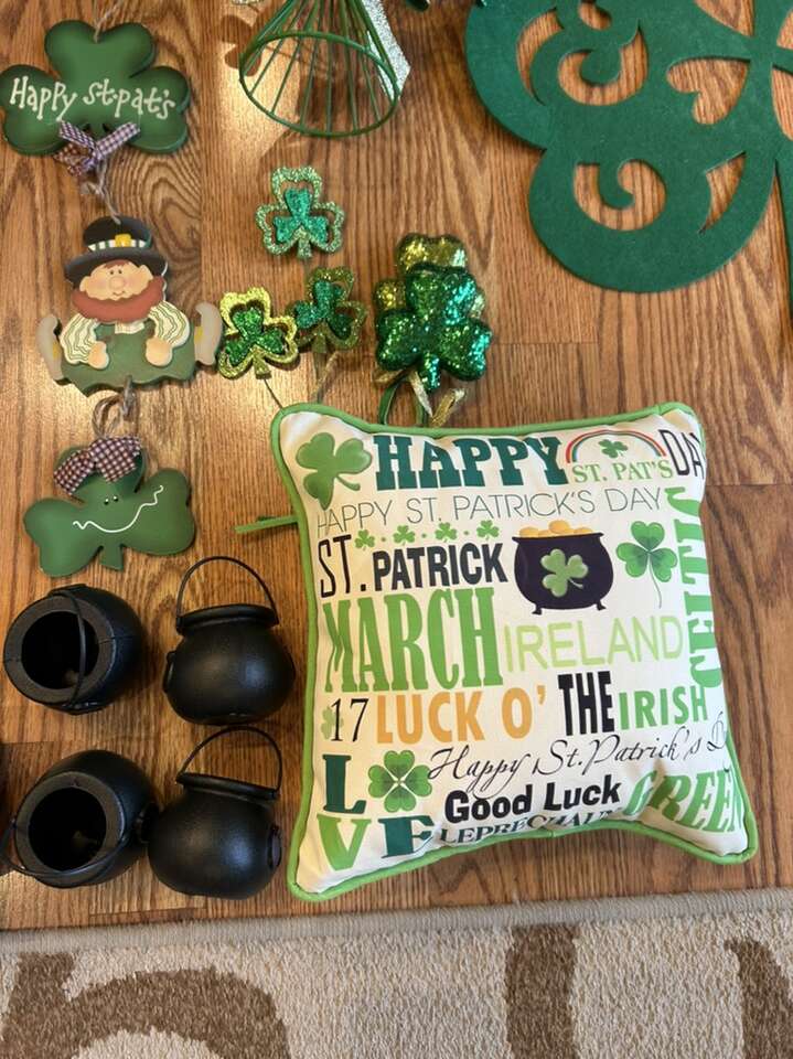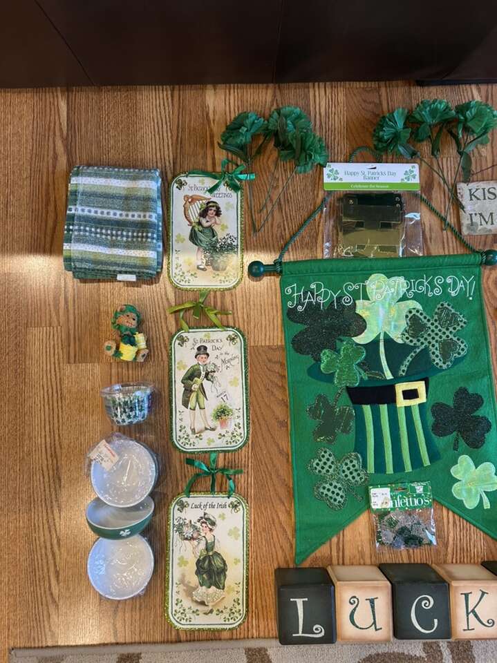 VenmoNew and like new St. Patrick’s Day decor for your home office or classroom. Edit the Lucky wood blocks are sold. Includes large door flag three wood hangings set of four lucky charm, ceramic bowls, one sub style pillow, lucky charm floral pics. Everything is from a clean smoke free home. Cash or Venmo. Porch pick up for Alpine.